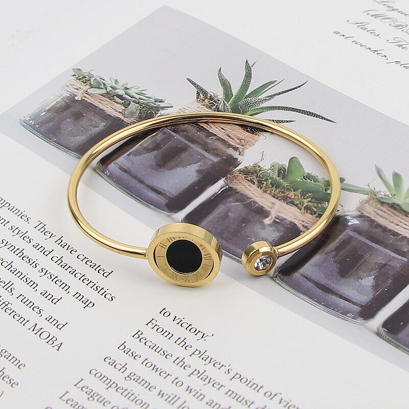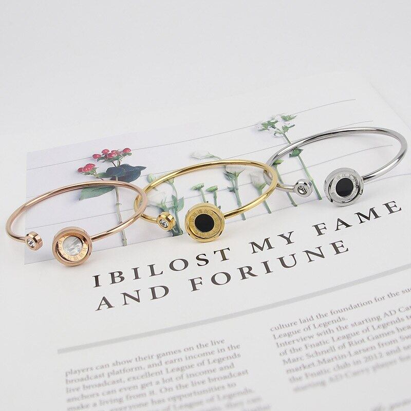 送料無料 回転可能な黒と白のローマのデジタルダブルブレスレットチタンスチールクリスタルブレスレット女性のジュエリー ホワイト ブラック アクセサリー AE00887740547847884