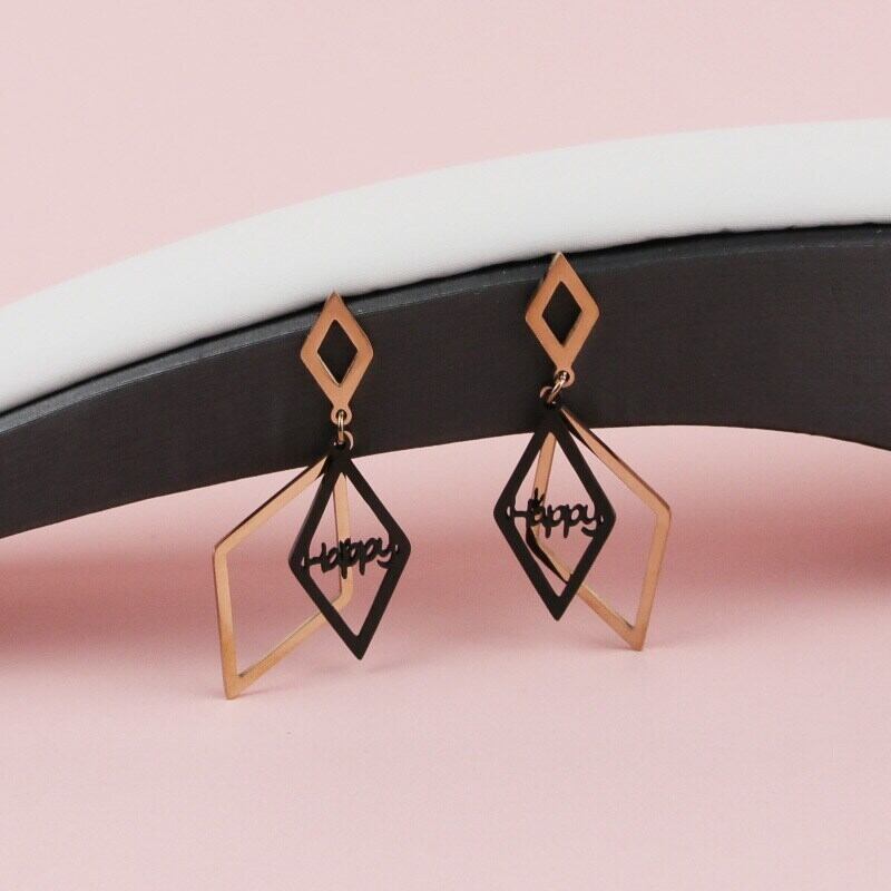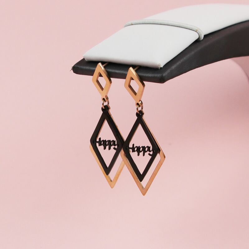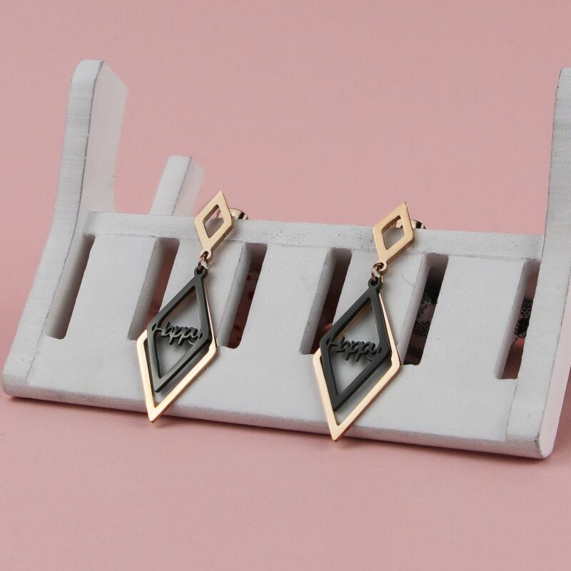 送料無料 黒い文字をぶら下げているイヤリングハッピーローズゴールドイヤリング女性のジュエリー ブラック 指輪 アクセサリー AE00887720273261839