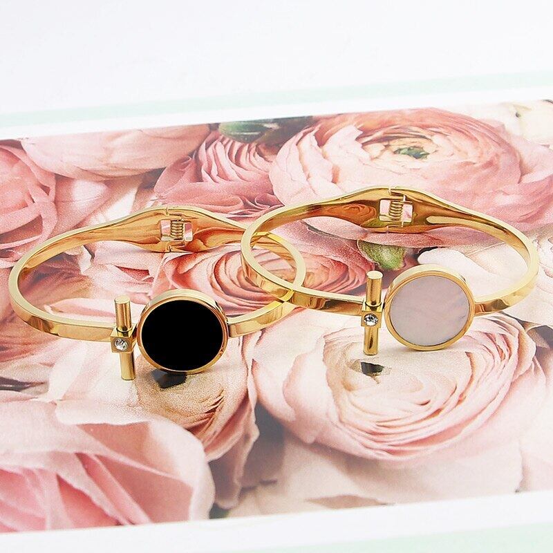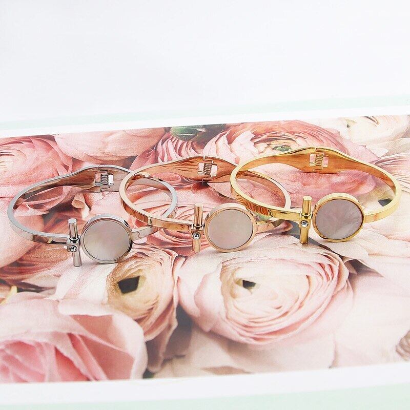 送料無料 トップバングルビッグサークルシェルとエナメルの女性のブレスレットとバングルステンレス鋼の春のオープンラブジュエリーの女性 スプリング 春物 アクセサリー AE00887753083290577