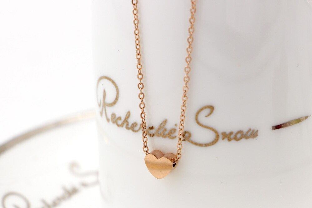 送料無料 光沢のあるハートピーチハートペンダントローズゴールドチタンスチールクラビクルネックレスファッションジュエリークラビクルネックレス レース アクセサリー AE00887794729719266