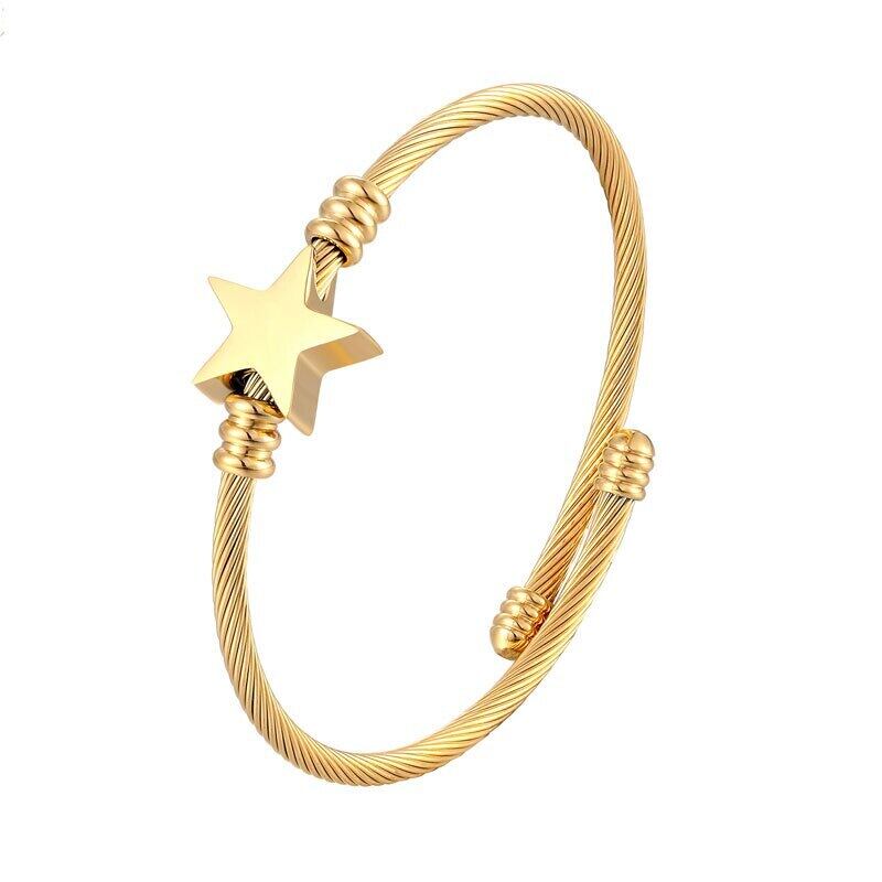 送料無料 かわいい星型バングル調節可能なサイズのブレスレットステンレス鋼ツイストケーブルワイヤージュエリー女性はギフトが大好きです 大人ガーリー スウィート キュート カジュアル アジャスタブル アクセサリー AE00887764056830540