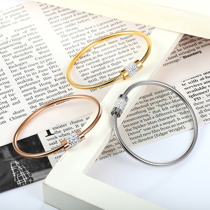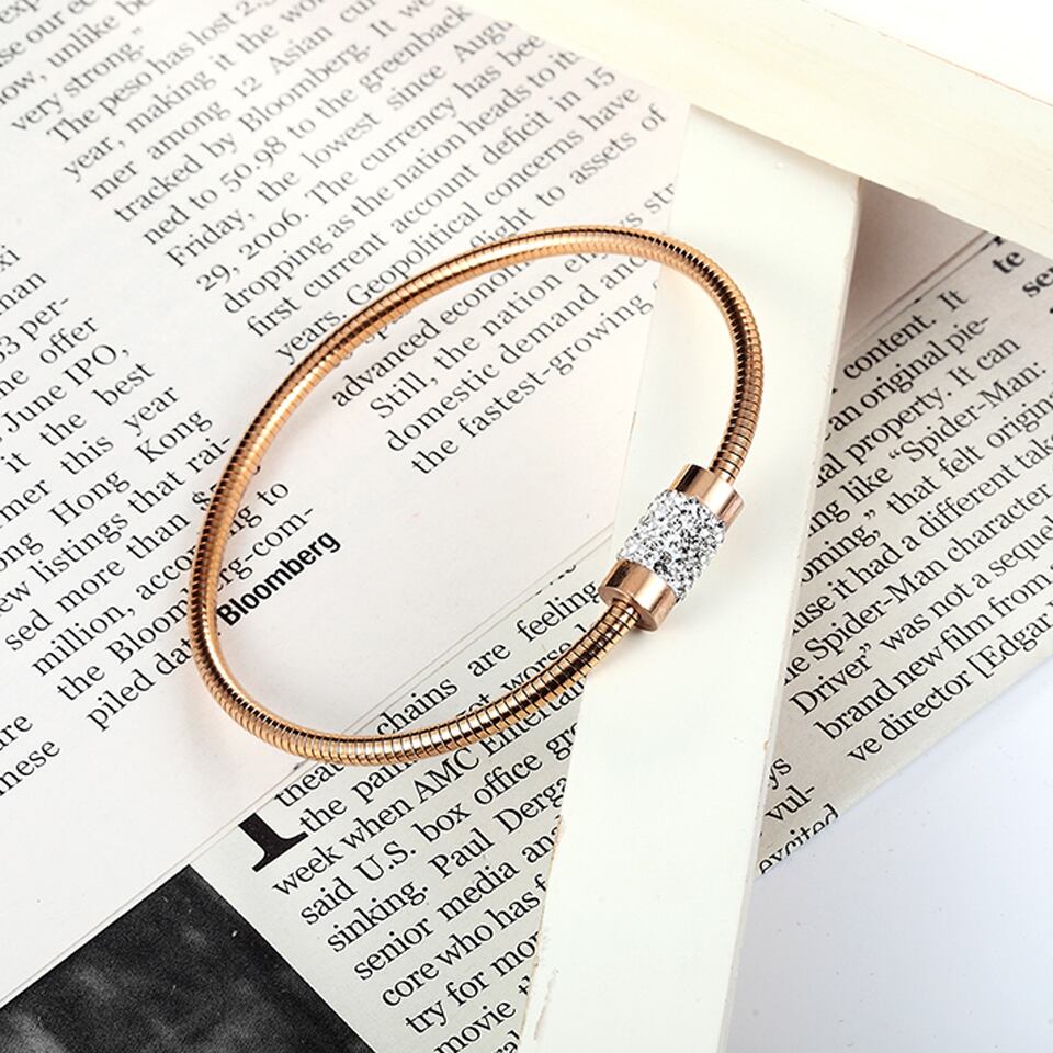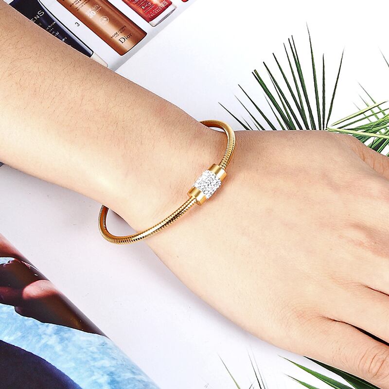 送料無料 クリックラウンドマグネットクラスプサークルジルコンバングルステンレススチールゴールドカラージュエリースネークチェーンブレスレット女性 アクセサリー AE00887722922425782