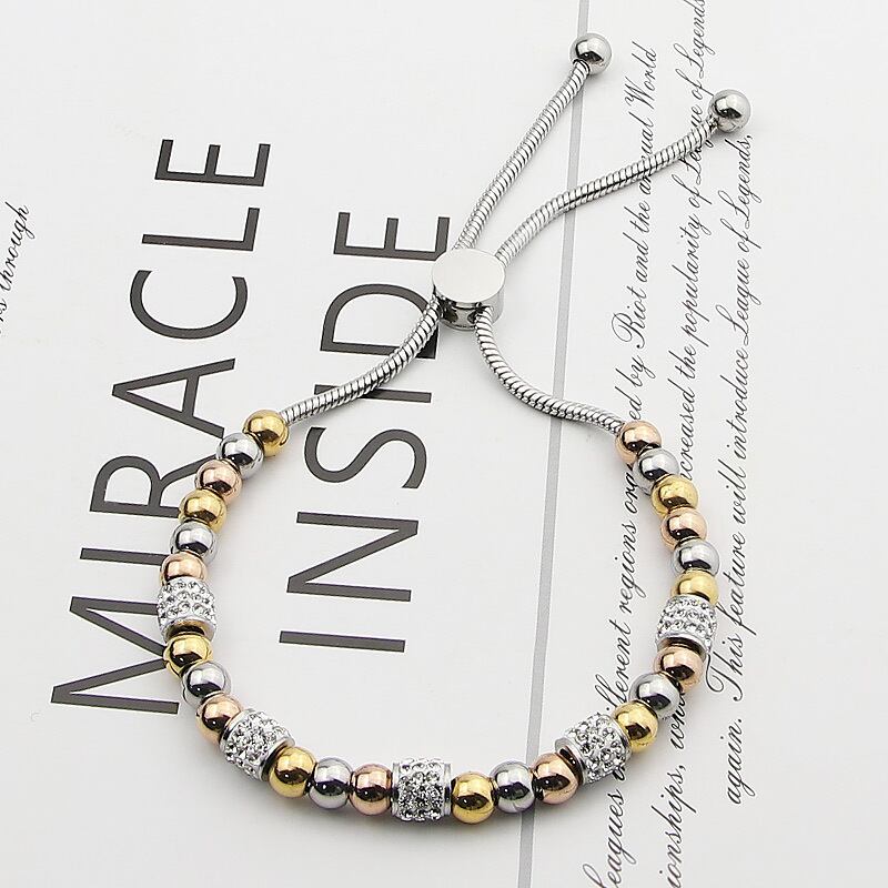 送料無料 超美しいビーズとジルコンサークル調整されたサイズの女性のブレスレットチタン鋼の宝石類のブレスレットギフト女性と子供たち アクセサリー AE00887783701361370