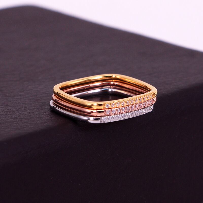 送料無料 ホットステンレススチールジュエリー幾何学的な正方形のCNC象眼細工ジルコンリング愛の女性のパーティーギフト 指輪 スクウェア アクセサリー AE00887769909714706