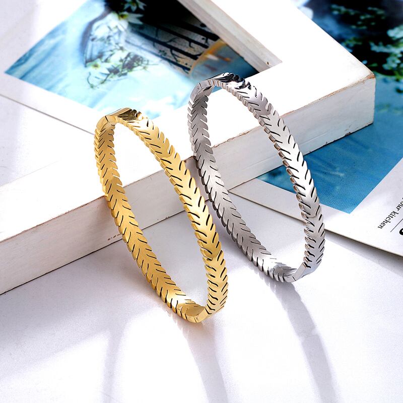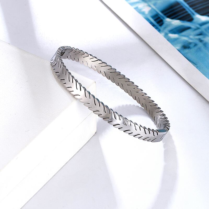 送料無料 ユニークなカットエッジリーフシェイプステンレススチールブレスレットラブバングルジュエリーギフト アクセサリー AE00887735648604818
