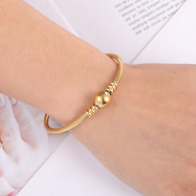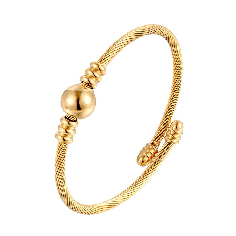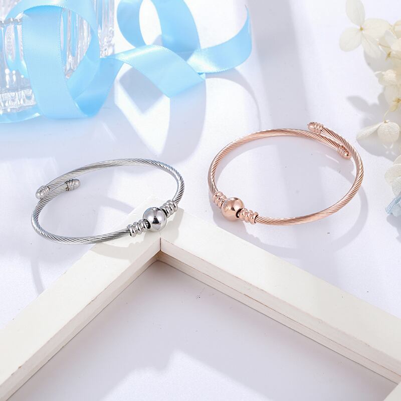 送料無料 クリックバングル調節可能なサイズケーブルツイストワイヤーストライプビーズブレスレットステンレス鋼トップ女性パーティージュエリーギフト アジャスタブル アクセサリー AE00887724867492360