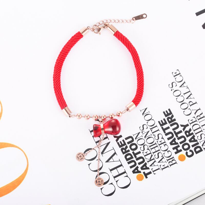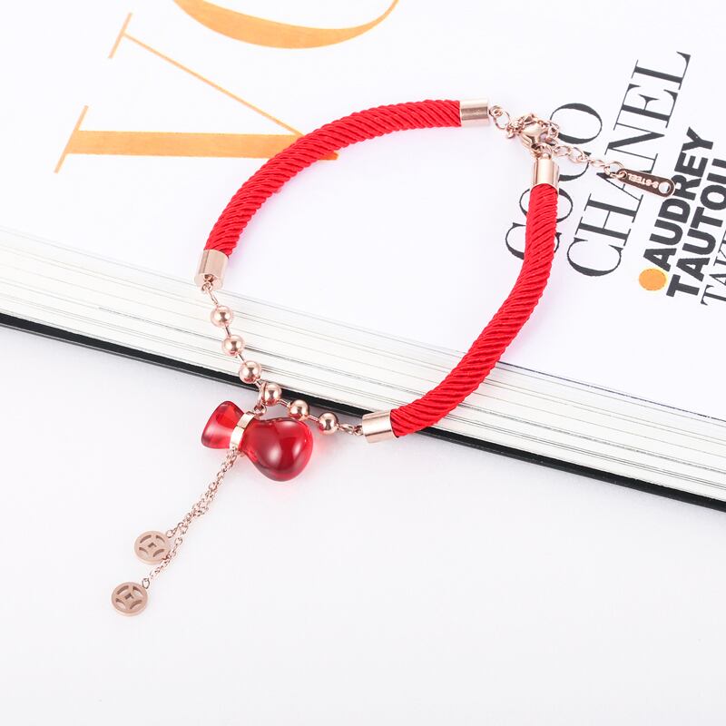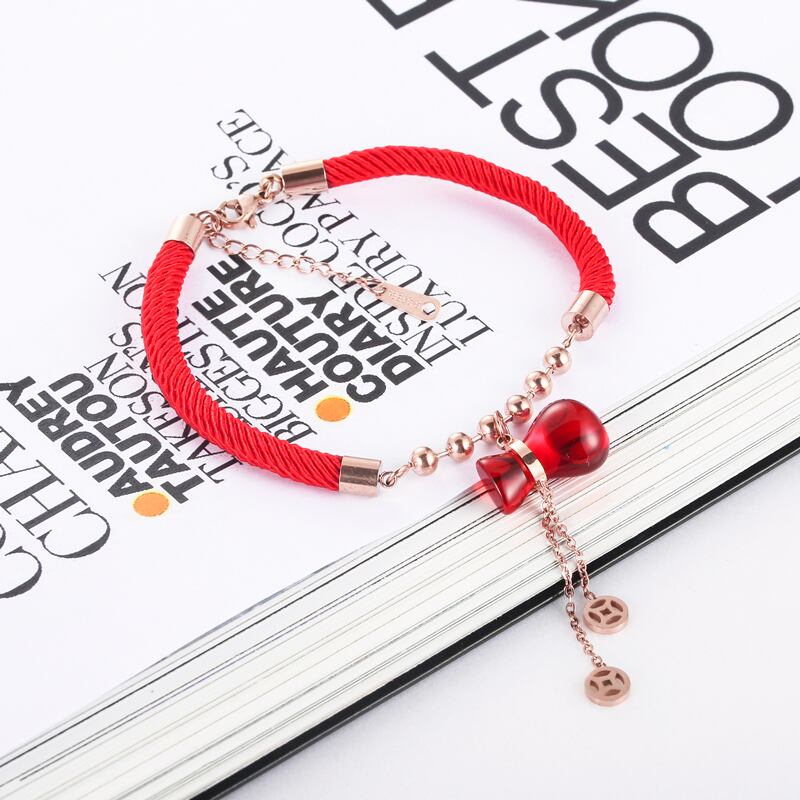 送料無料 かわいい赤いひょうたんフーバッグ銅マネーtel赤いロープブレスレットチタン鋼ブレスレットジュエリー女性モデル結婚式 レッド 大人ガーリー スウィート キュート カジュアル アクセサリー AE00887794744812163