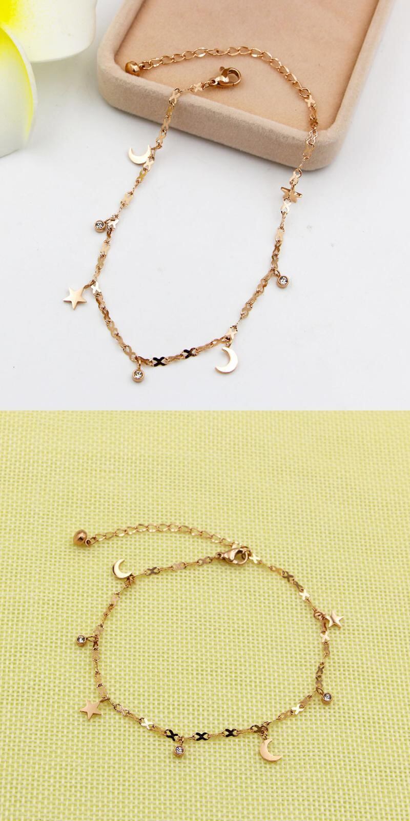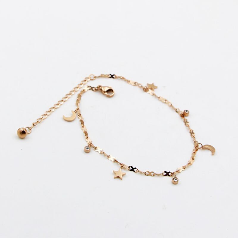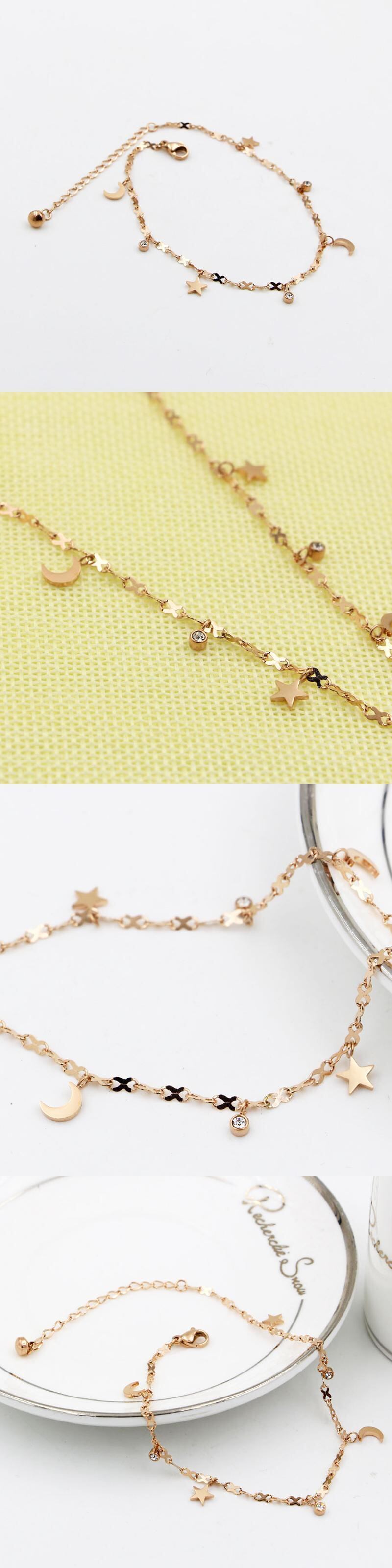 送料無料 かわいい美しいスタームーンクリスタルアンクレットチタンスチール8シェイプチェーンローズゴールドウーマンジュエリー長さ20cm+5cm 大人ガーリー スウィート キュート カジュアル アクセサリー AE00887776696940670