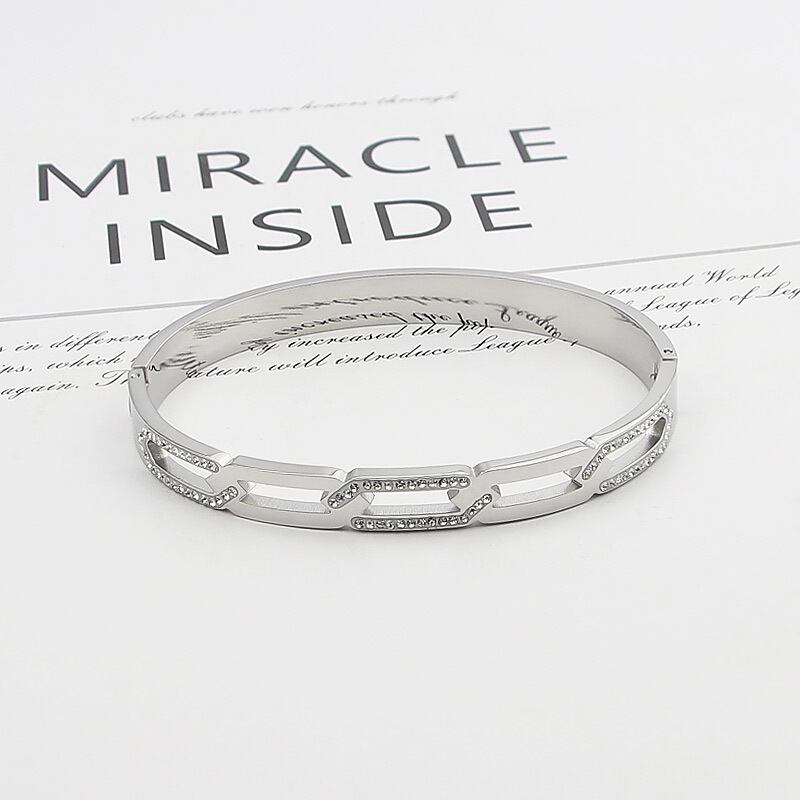 送料無料 絶妙なジルコンチェーンシェイプブレスレット&バングルステンレススチールウーマントレンディバングルゴールドメッキジュエリーPulseira アクセサリー AE00887766702063944