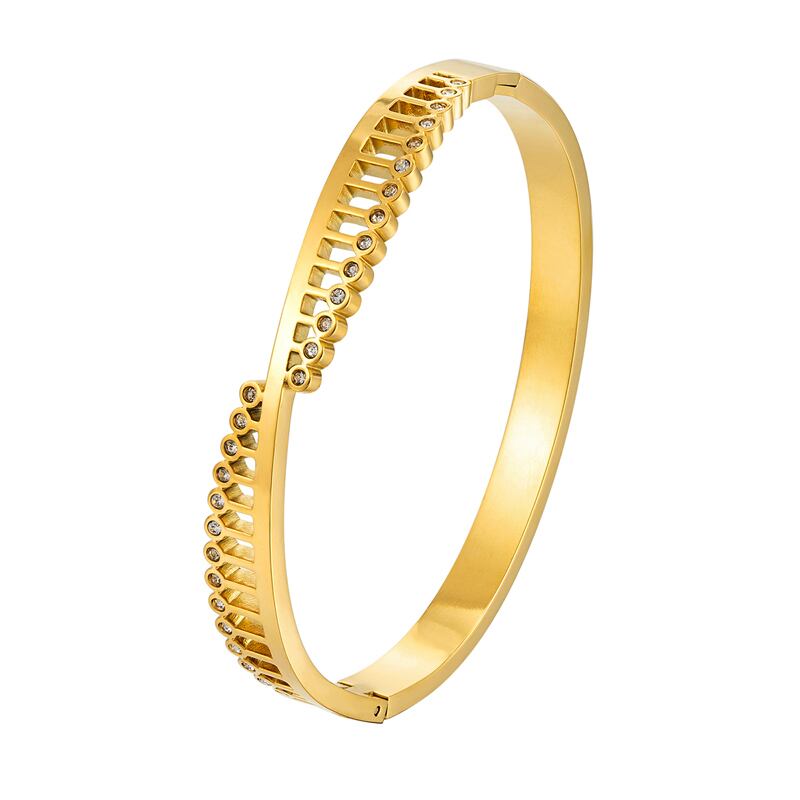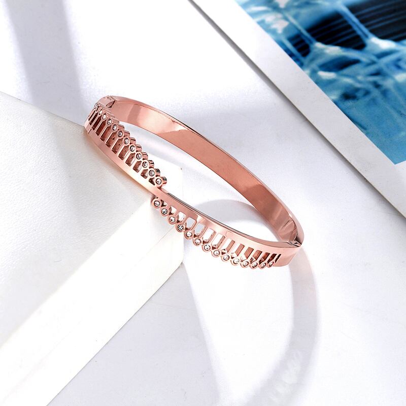 送料無料 ユニークなスカラップシリンダークリスタルホローステンレススチールバングルはブレスレットジュエリーギフトが大好きです アクセサリー AE00887778504503553