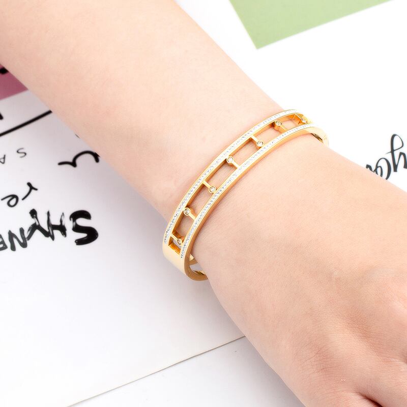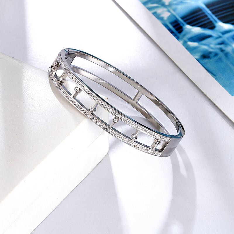 送料無料 ユニークなクリスタルホロー長方形ステンレススチールブレスレット女性ブレスレットラブジュエリーギフト アクセサリー AE0088776679059735