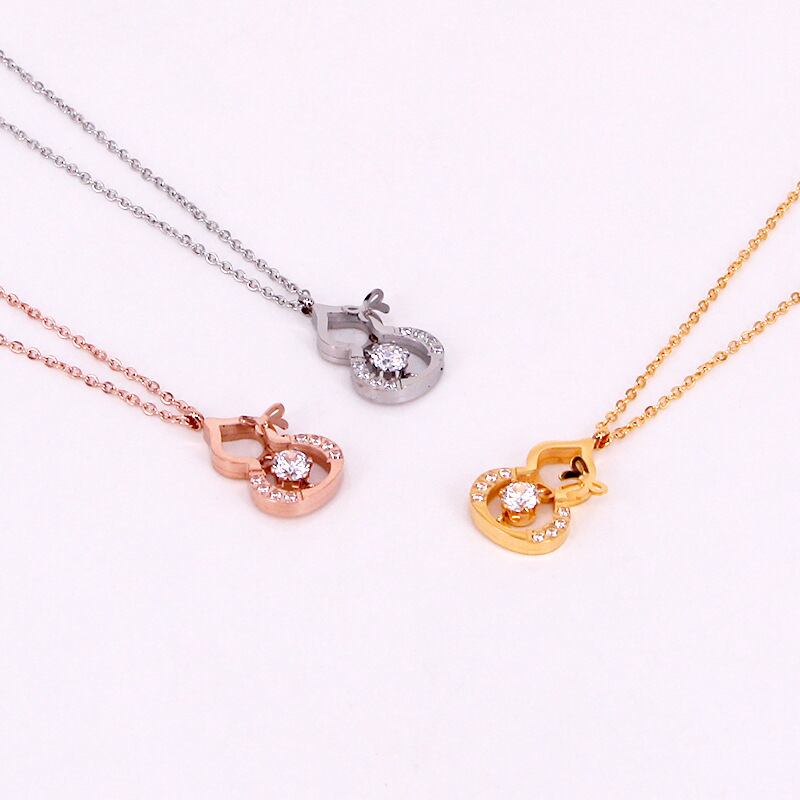 送料無料 新しいマイクロ象眼細工のクリスタルボウノットひょうたんネックレス女性のネックレスクリスタルネックレス女性のジュエリー卸売 リボン レース アクセサリー AE00887798811675611