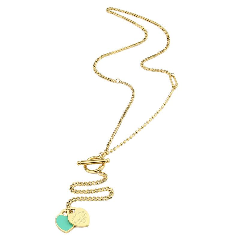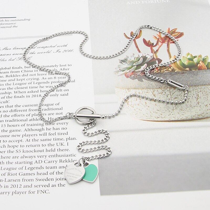 送料無料 パンクスタイルのジュエリーラブステンレススチールネックレスダブルピーチハートペンダントネックレス女性パーティーギフト レース アクセサリー AE00887784013934957