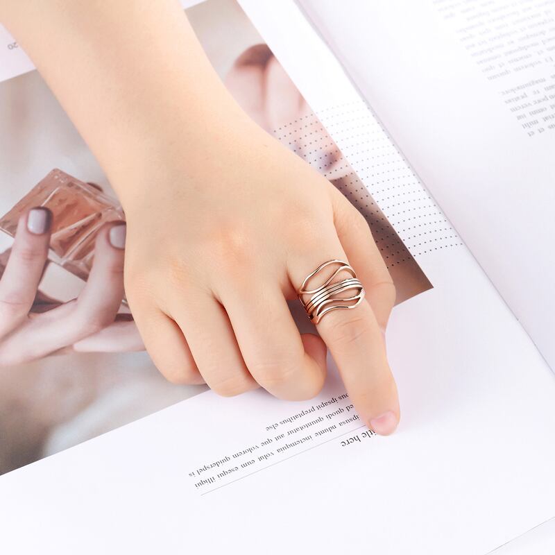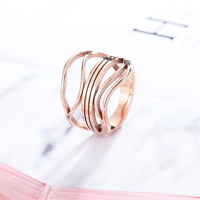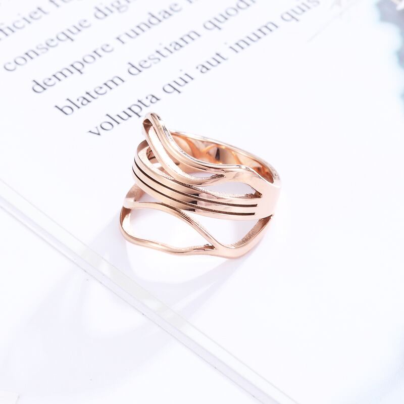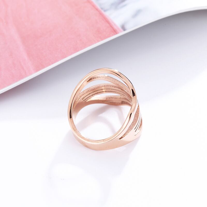 送料無料 1.8cmワイドパーソナリティ不規則なストライプの女性ローズゴールドカラーリングトップステンレススチールジュエリー女性ギフト 指輪 アクセサリー AE00887775043990922