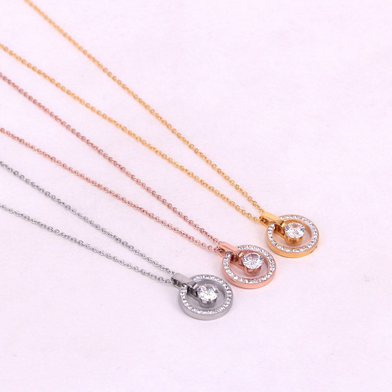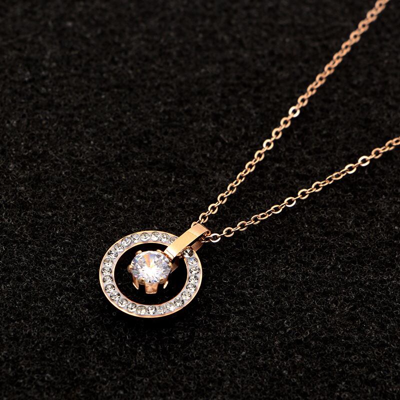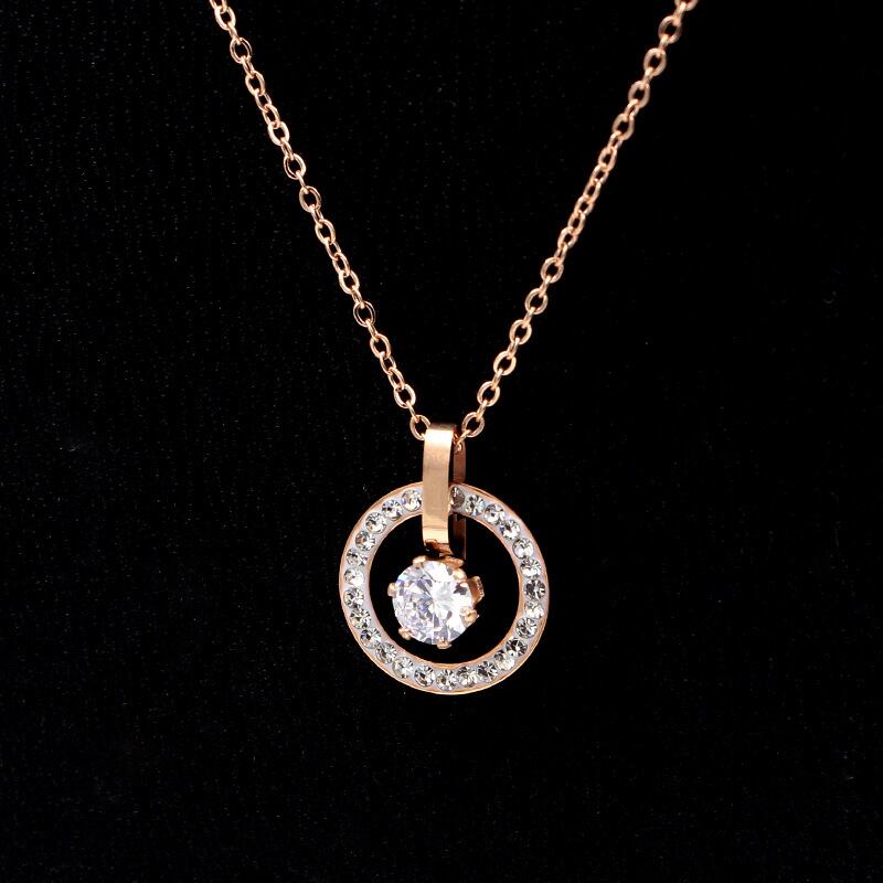 送料無料 スーパーフラッシュクリスタルサークルローズゴールドネックレス鎖骨チェーン女性ネックレスジュエリー女性ギフト レース アクセサリー AE00887761487894095