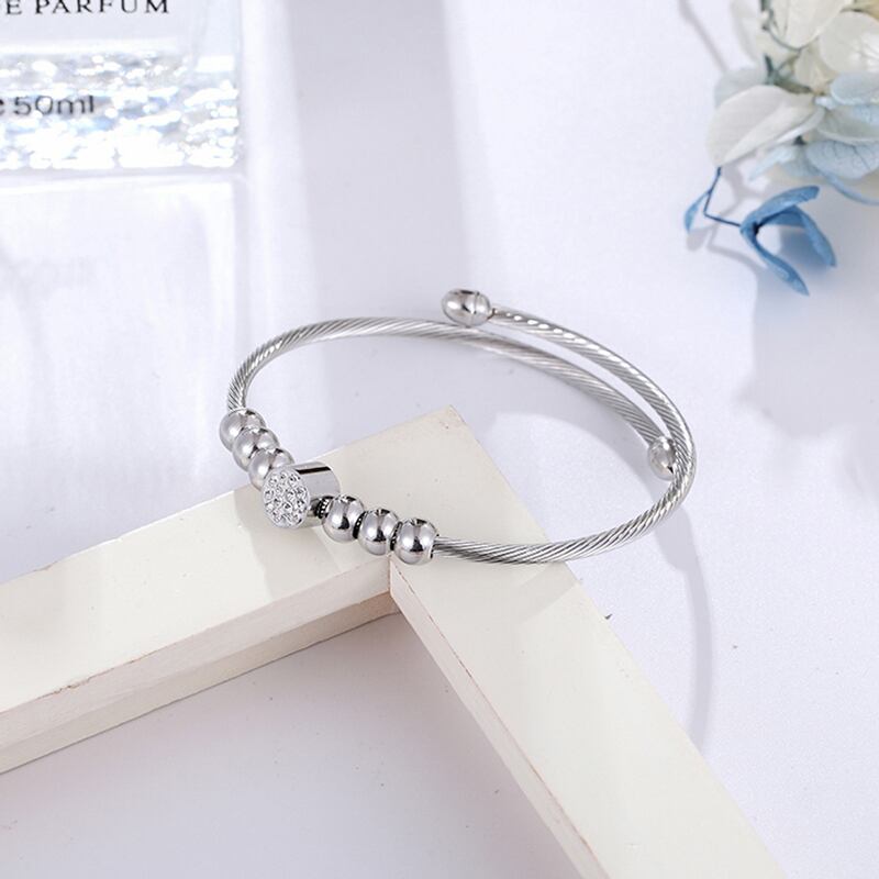 送料無料 調節可能なサイズのケーブルツイストワイヤーストライプビーズとジルコンバングルレディースウェディングギフトステンレススチールブレスレット アジャスタブル アクセサリー AE00887733855277467