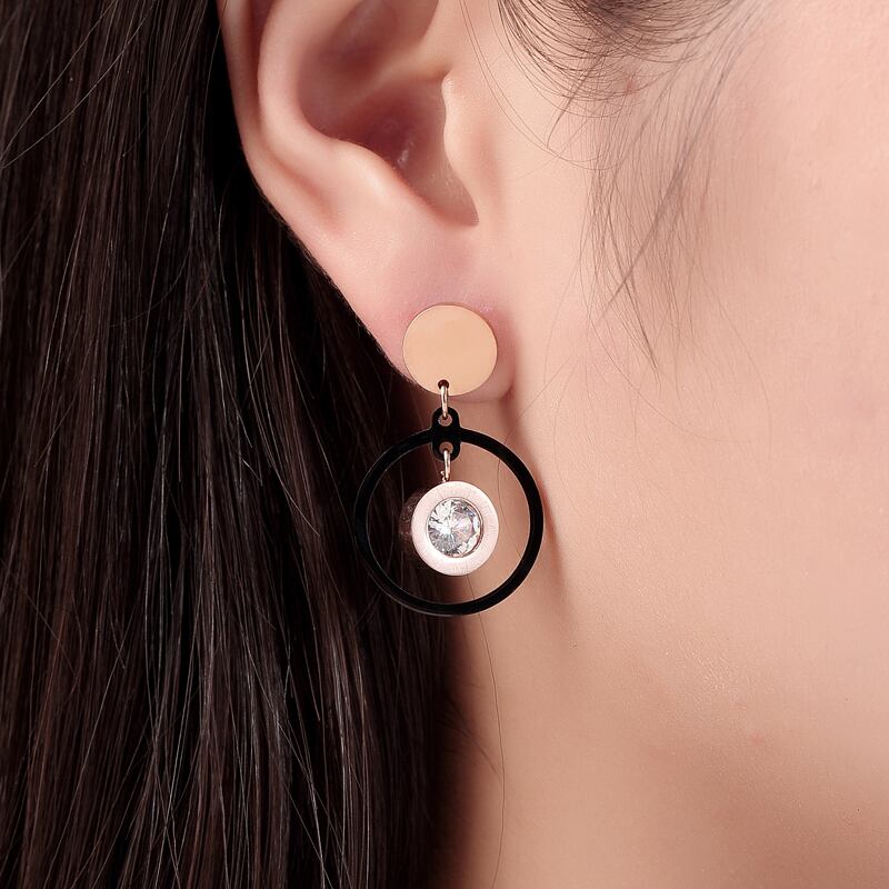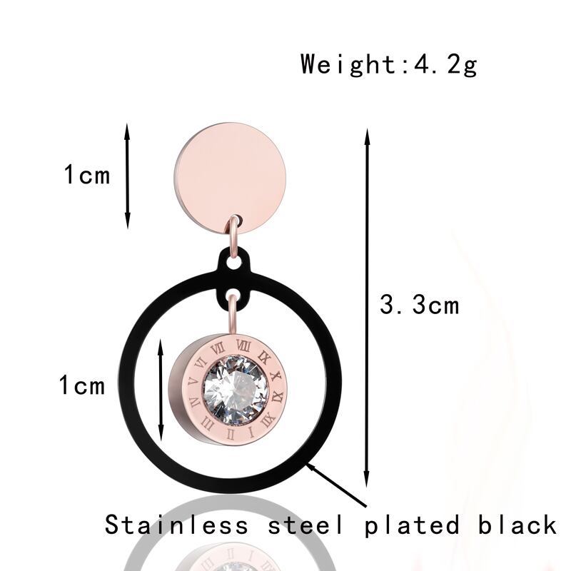 送料無料 ローズゴールドサークルハンギングブラックサークルミドルローマ数字クリスタルイヤリングステンレススチールジュエリーウーマンビューティフルイヤリング アクセサリー AE00887760183428994