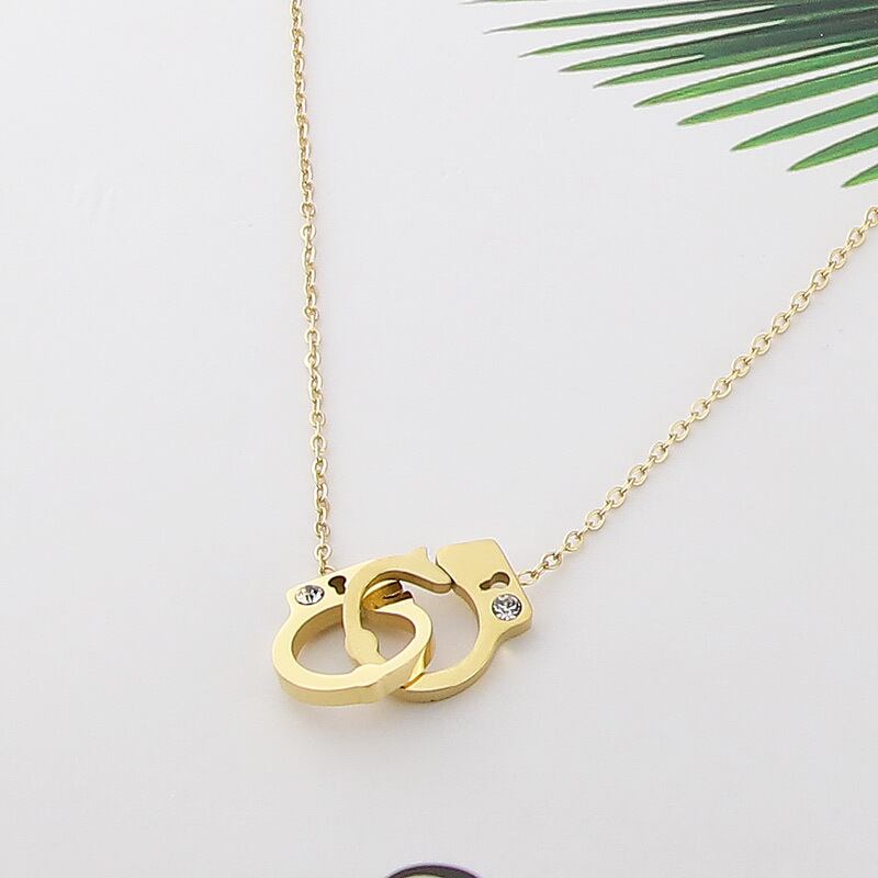 送料無料 クリックステンレススチールクリスタル手錠ロックペンダントネックレス女性はギフトジュエリーが大好き レース アクセサリー AE00887754612633427