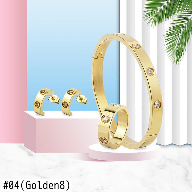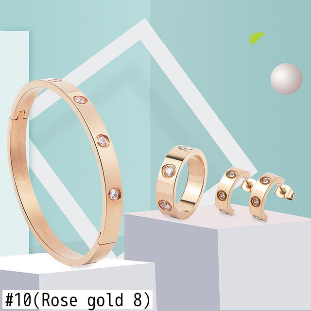 送料無料 美しい繊細なセットクリスタルブレスレットとリングとスタッドピアス女性ギフト愛バングルジュエリーセット イヤリング 指輪 アクセサリー AE00887784910535872