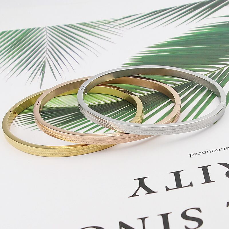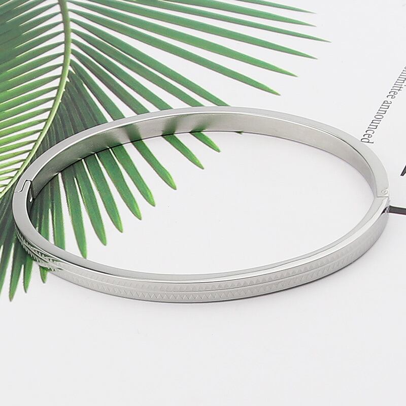 送料無料 ステンレス鋼の宝石類刻まれた三角形のグラフィックウェーブラインバングル女性と子供たちのブレスレットパーティーギフト アクセサリー AE00887797647375004