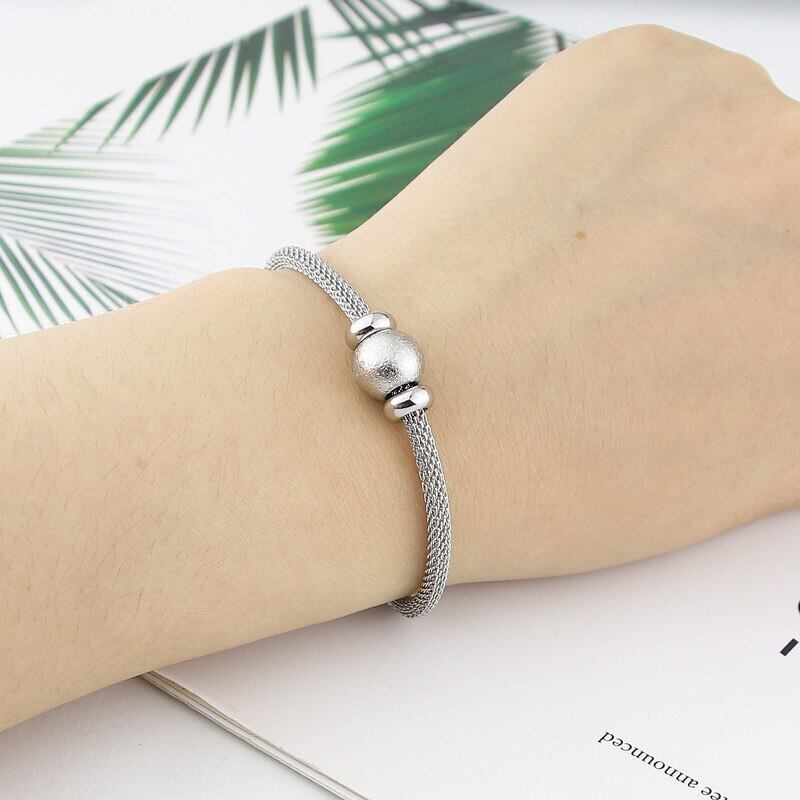 送料無料 ステンレス鋼ダブルサークル固定つや消し鋼球ネットパターンブレスレット女性ブレスレットラブジュエリーB-28 アクセサリー AE00887728725770477
