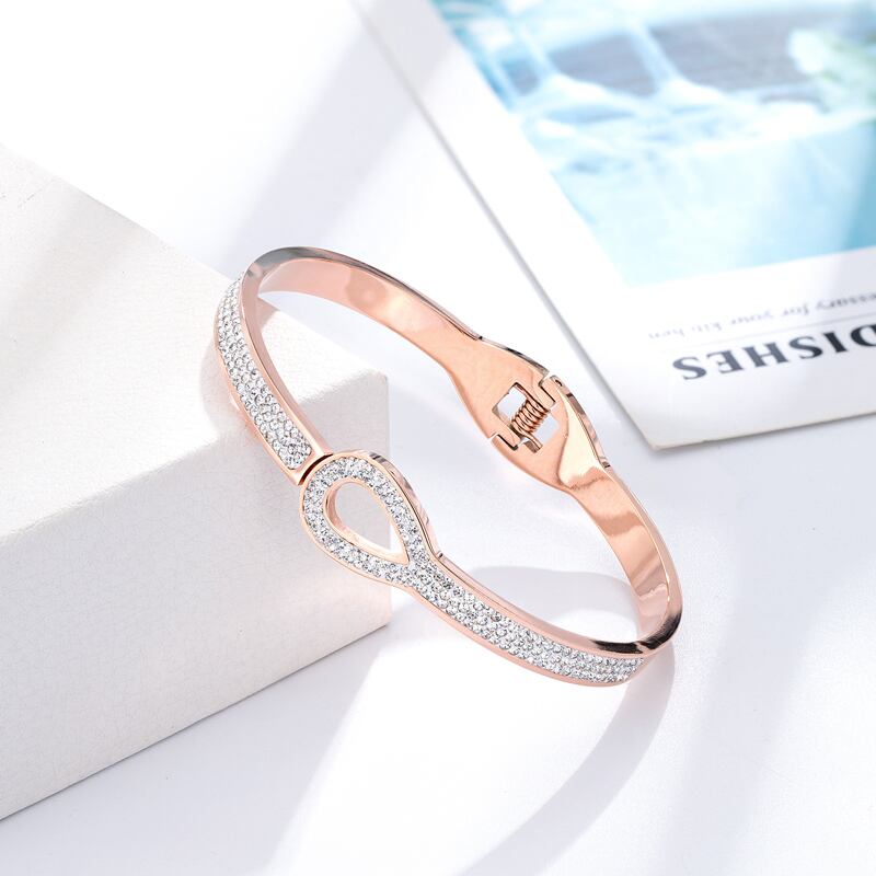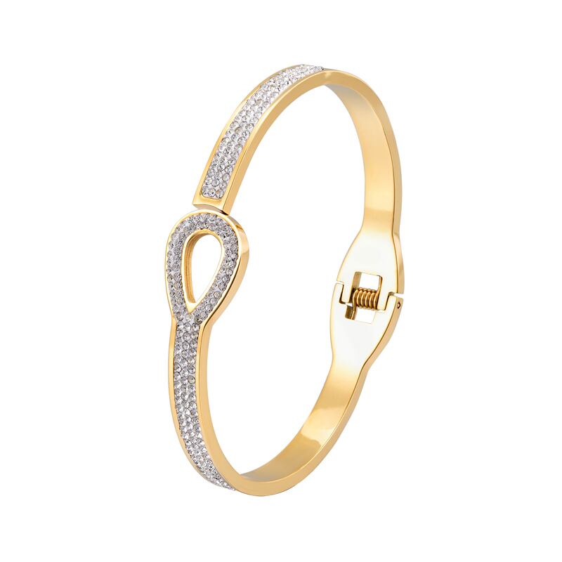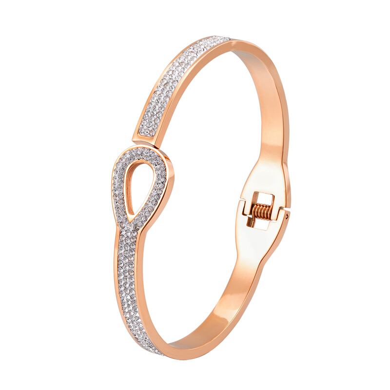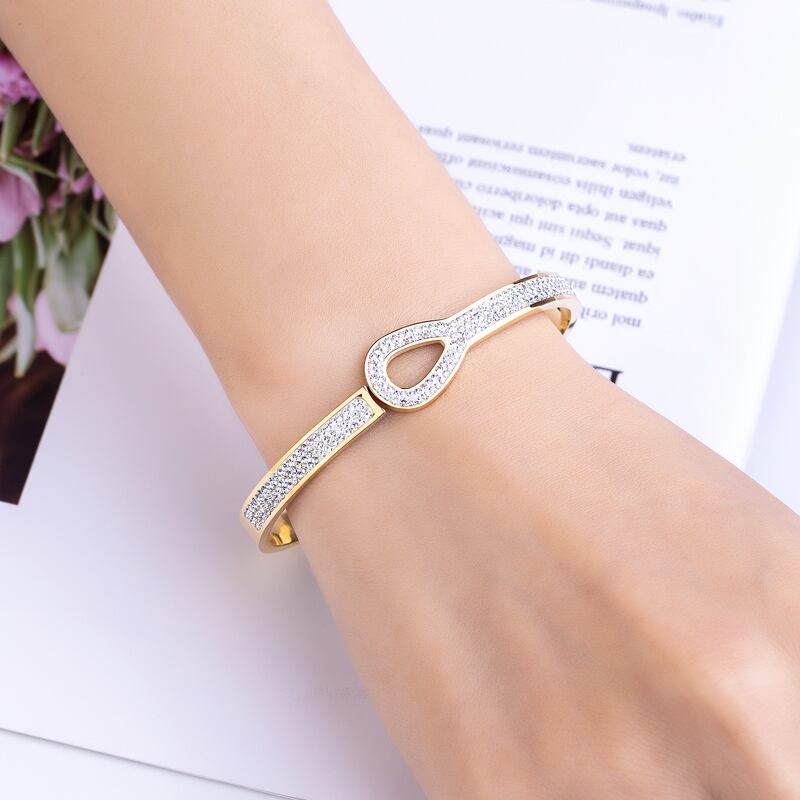 送料無料 ホットNEWクリスタルホロウウォーターブレスレットウィメンズラブギフトステンレススチールスプリングオープンバングルジュエリー 春物 アクセサリー AE00887767999876617