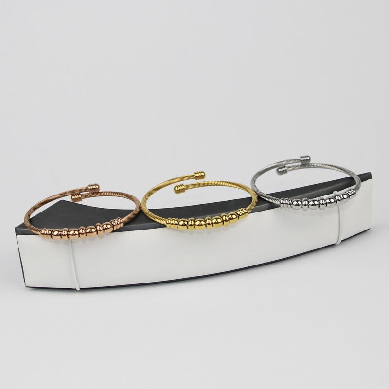 送料無料 製品ツイストワイヤービーズバングルPulsirasレディースジュエリーブレスレットステンレススチールレディースジュエリー アクセサリー AE00887714005688039