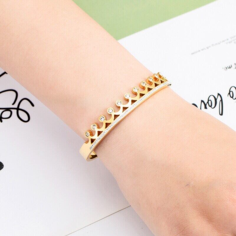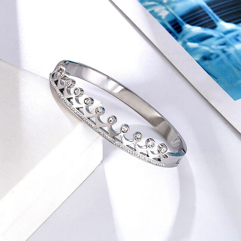 送料無料 ユニークなスマイルVクリスタルホロウステンレススチールブレスレットブレスレットジュエリーラブギフト アクセサリー AE00887748551565586