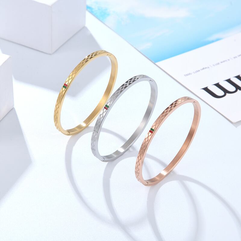 送料無料 トレンディなバングル女性赤と緑の魅力ステンレス鋼金メッキジュエリー恋人バングル高級結婚式のバングル レッド グリーン アクセサリー AE00887731842270049