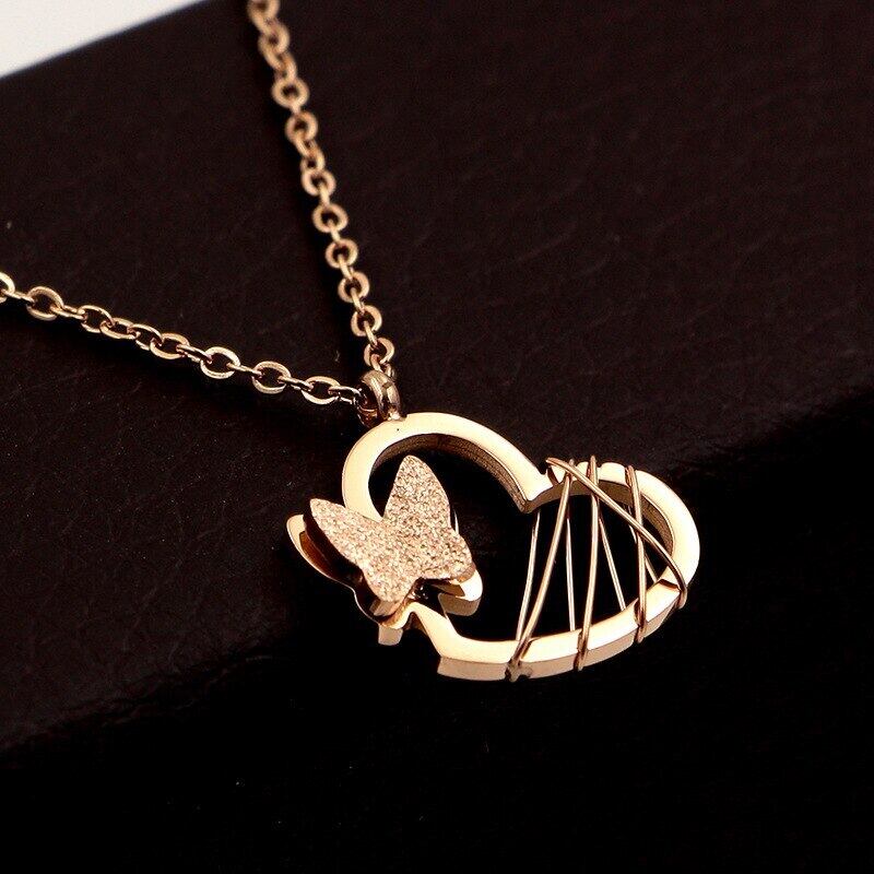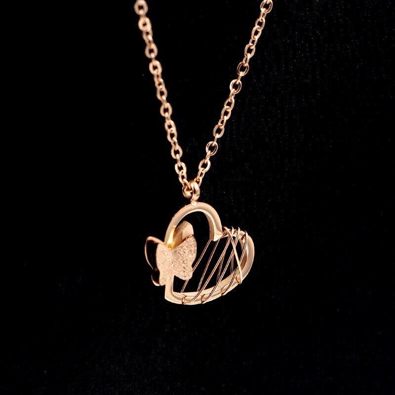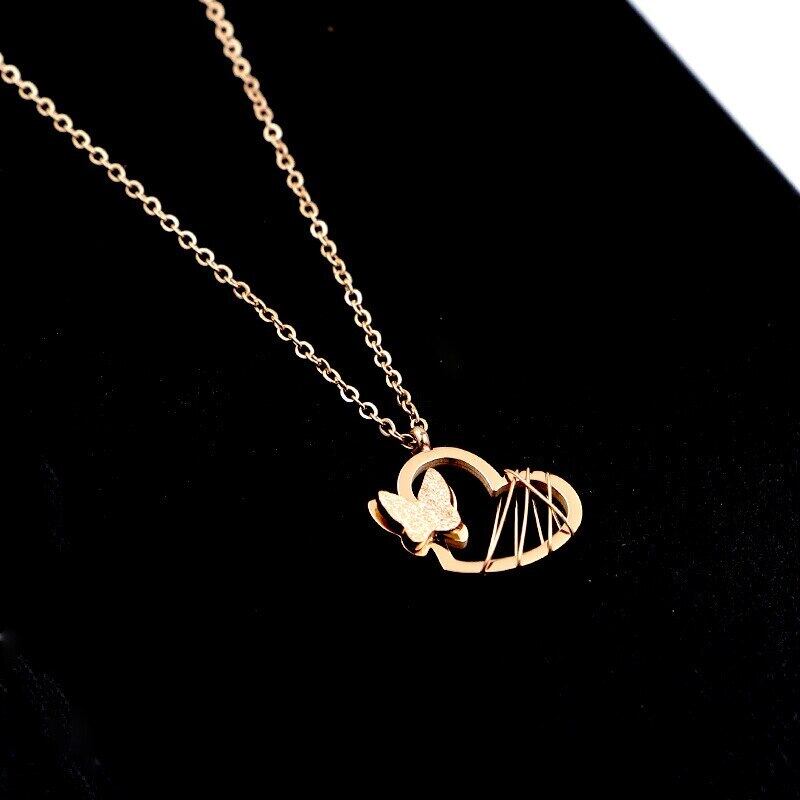 送料無料 気質つや消し蝶サンドイッチ女性ネックレスワイルドピーチハート鎖骨ネックレス女性ジュエリー卸売 レース アクセサリー AE00887766391523515