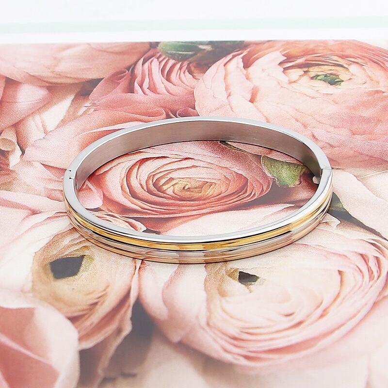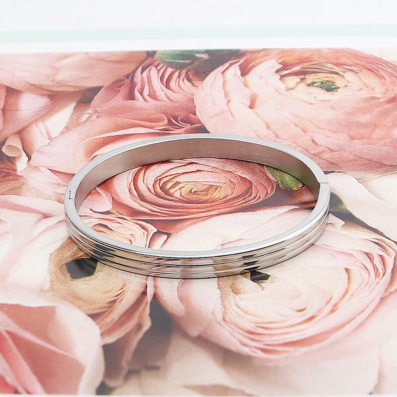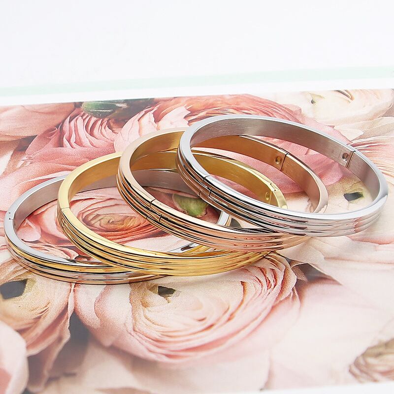 送料無料 トップ女性バングルチタンスチールローズゴールドカラーユニークなスリーサイドラウンドバングル&ブレスレットジュエリーウェディング アクセサリー AE00887738614094187