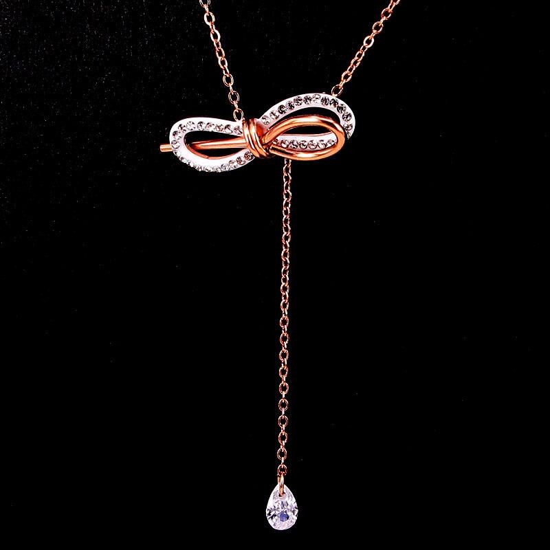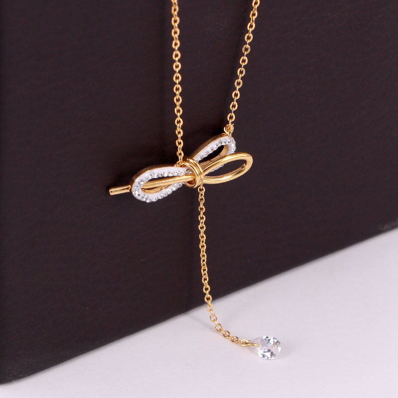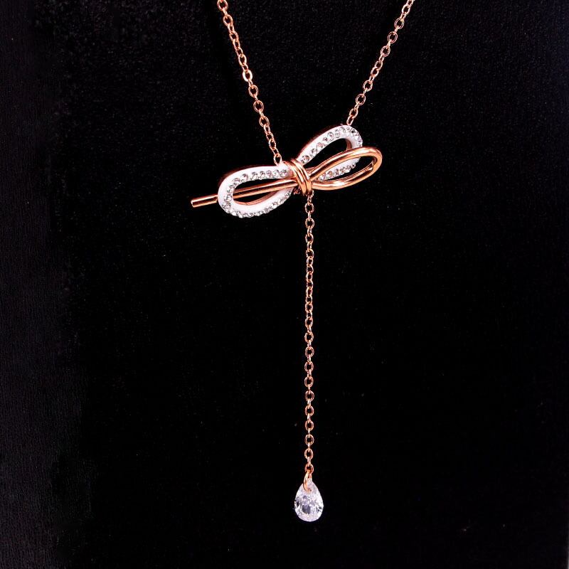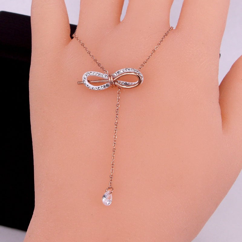 送料無料 ボウクリスタルペンダントステンレススチールネックレスボヘミアンスタイル鎖骨ネックレスジュエリーギフト リボン レース アクセサリー AE00887741810459551