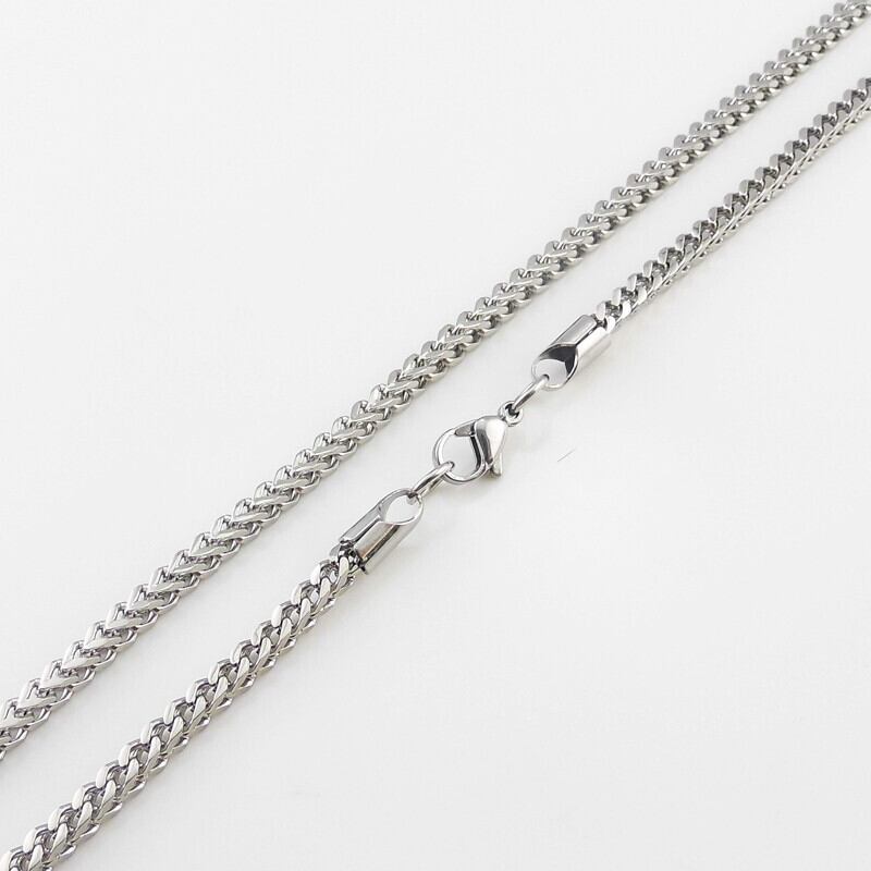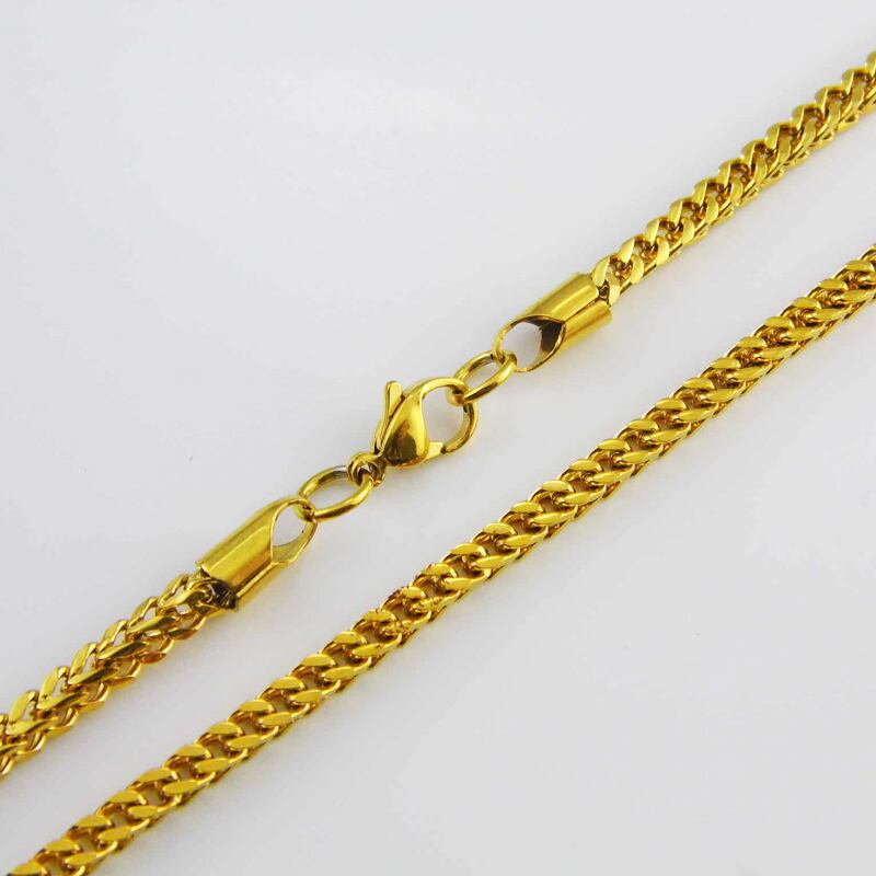 送料無料 幅3mm長さ24インチフランコチェーンジュエリーステンレススチールウィートチェーンヒップホップゴールドネックレスメンズ ロング レース アクセサリー AE00887734038677465