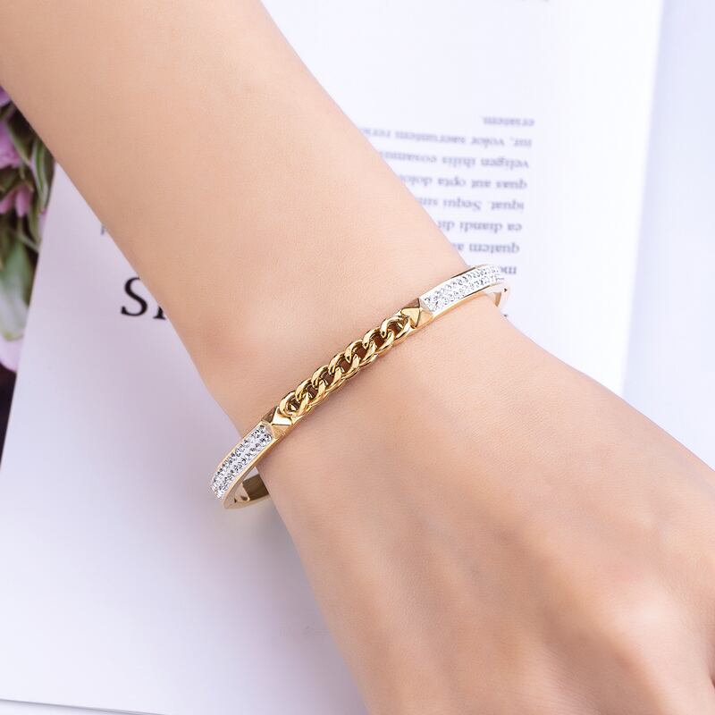 送料無料 ホットNEWチェーンクリスタルブレスレットレディースラブギフトステンレススチールブレスレットジュエリー アクセサリー AE00887744483313982
