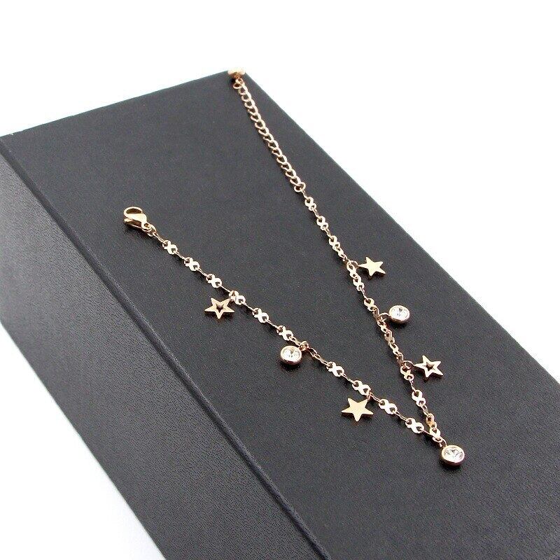 送料無料 ホットかわいい8シェイプチェーン4つ星3クリスタル女性アンクレットチタンスチールローズゴールドカラー女性のようなアンクレットギフト 大人ガーリー スウィート キュート カジュアル アクセサリー AE00887783250650692