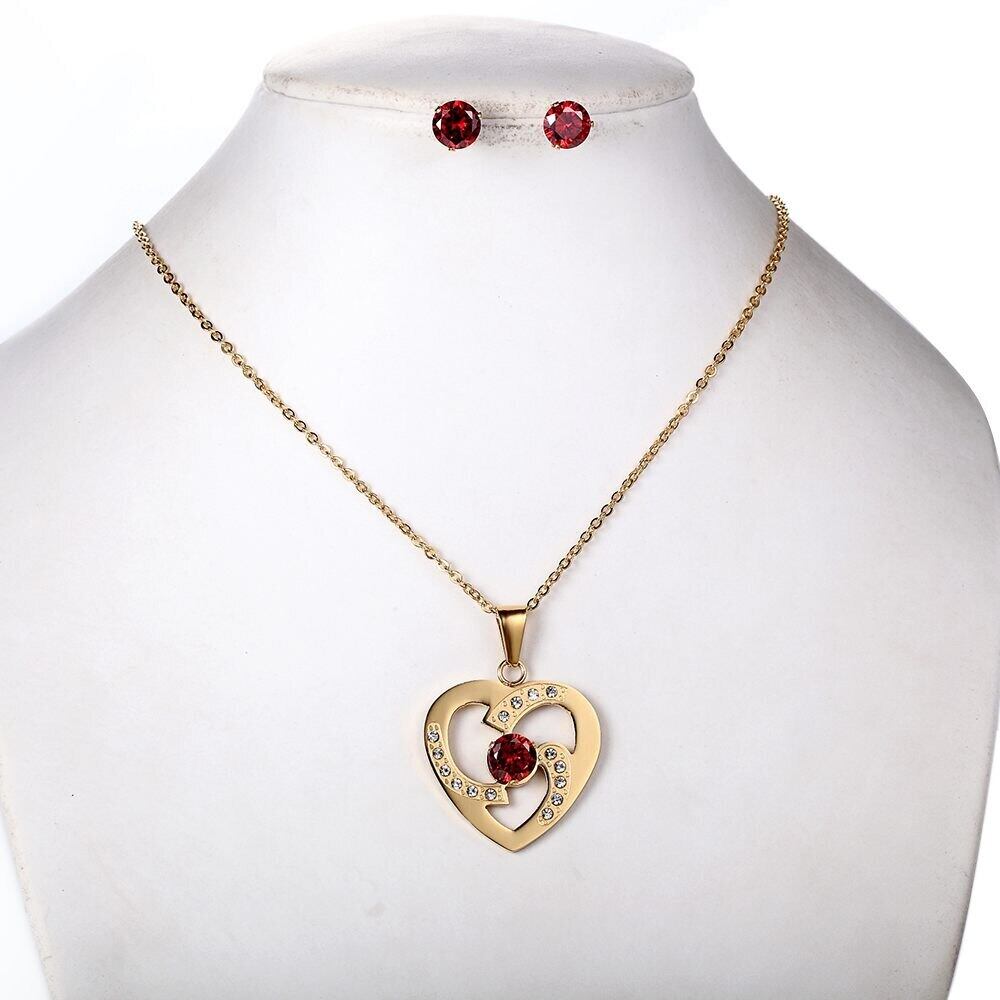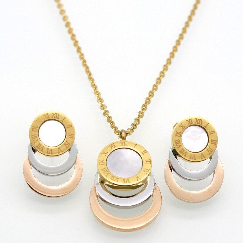 送料無料 3色ゴールド/ローズゴールド/シルバーカラーステンレススチールジュエリーStes女性イヤリング&ネックレスジュエリーセットで構成 レース 指輪 銀 アクセサリー AE00887754111670011