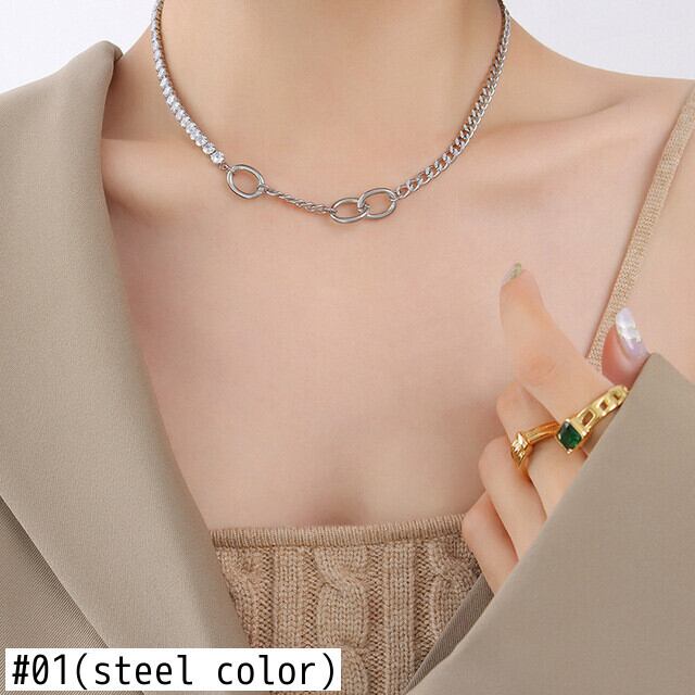 送料無料 ホットステンレス鋼サークルチェーンステッチジルコンジプソフィラネックレスラブジュエリー女性パーティーギフト レース アクセサリー AE00887795323590759