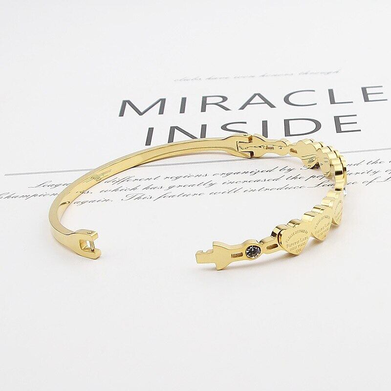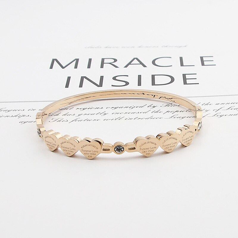送料無料 美しいクリスタルと6つの愛の小さなピーチハートブレスレット&バングルステンレス鋼ジュエリー女性バングル アクセサリー AE00887789429098061