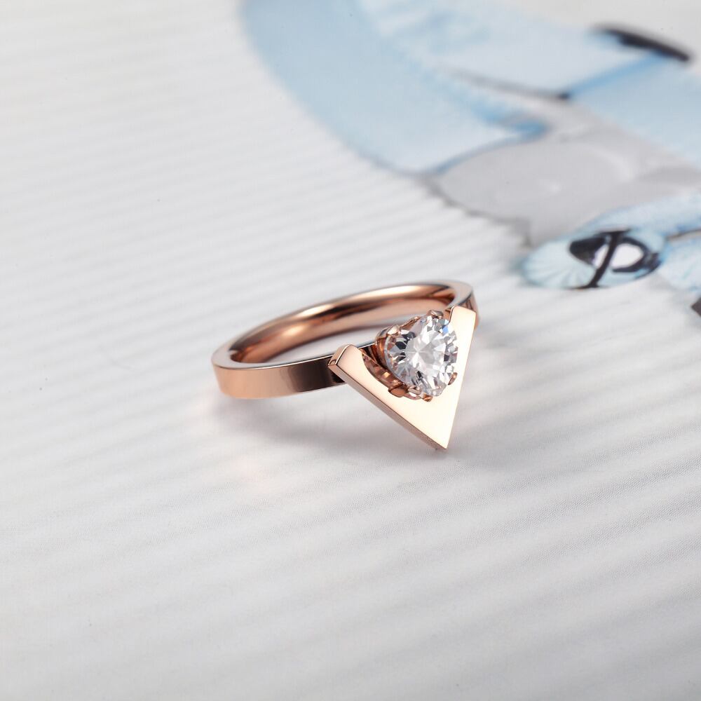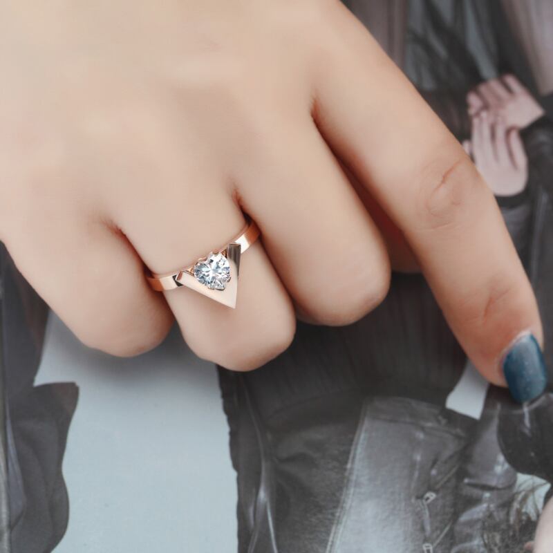 送料無料 ユニークなV字型象眼細工のハートクリスタルリング女性の結婚指輪ステンレス鋼ローズゴールドカラー高級ラブリング アクセサリー AE00887789246632157