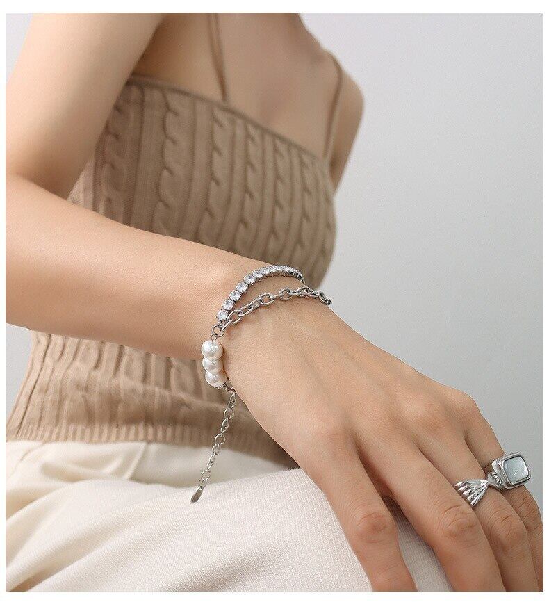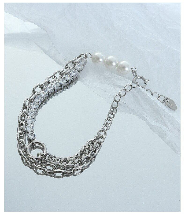 送料無料 ライトラグジュアリーイミテーションパールジルコンヒップホップパーソナリティステンレススチールブレスレット女性ウェディングラブジュエリー 真珠 アクセサリー AE00887787094692517