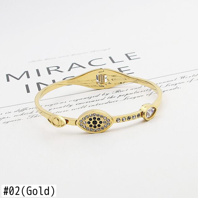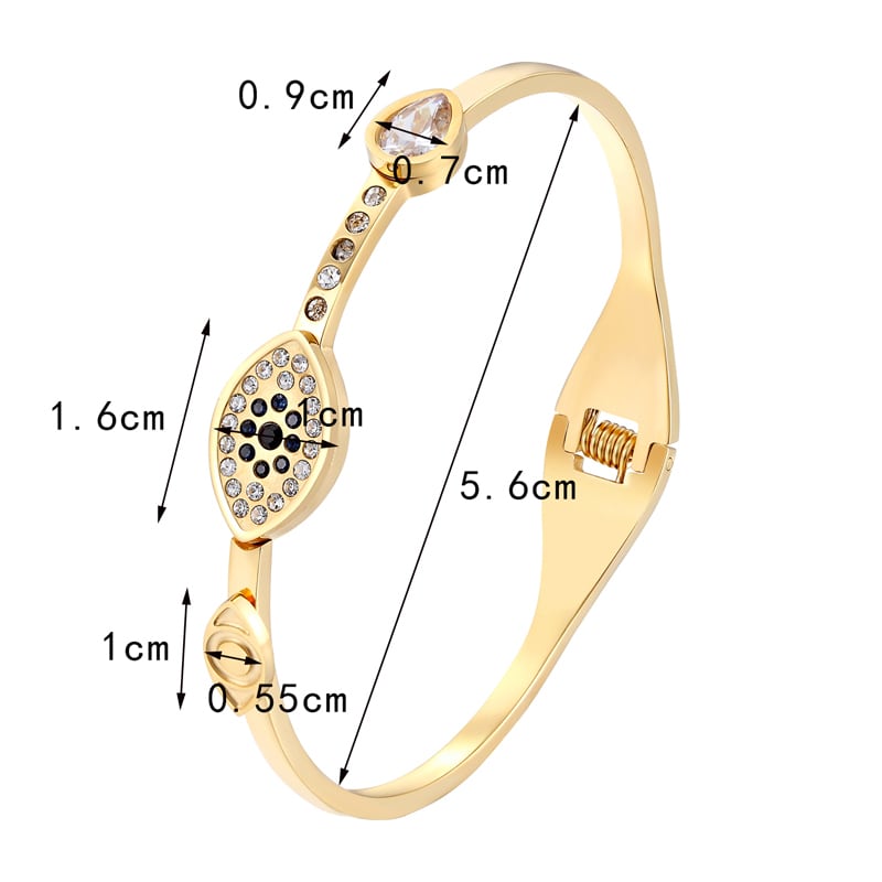送料無料 美しい目の形のクリスタルウーマンブレスレット&バングルステンレススチールスプリングオープンゴールドカラーメッキバングルジュエリー 春物 アクセサリー AE00887711034465430