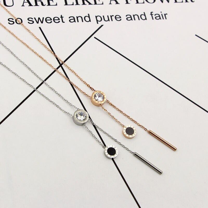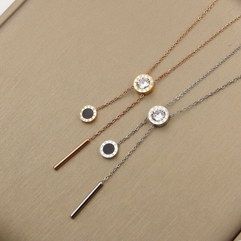 送料無料 ローマ数字単結晶ぶら下げブラックラウンドケーキラウンドショートネックレス女性ファッションジュエリークラビクルネックレス レース アクセサリー AE00887750446715594