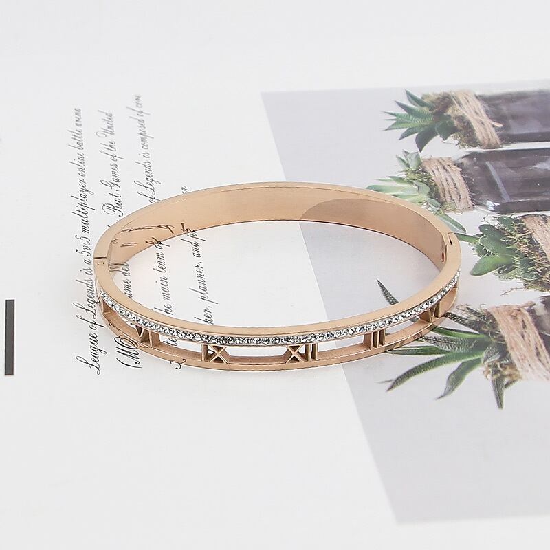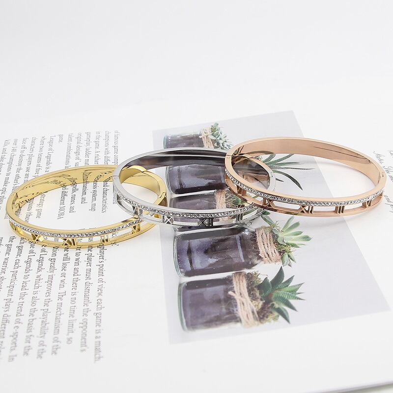 送料無料 ベストセラーのクリックデザインエレガントな中空ローマ数字クリスタルブレスレットとステンレススチールジュエリーブレスレット女性 アクセサリー AE00887723298444331