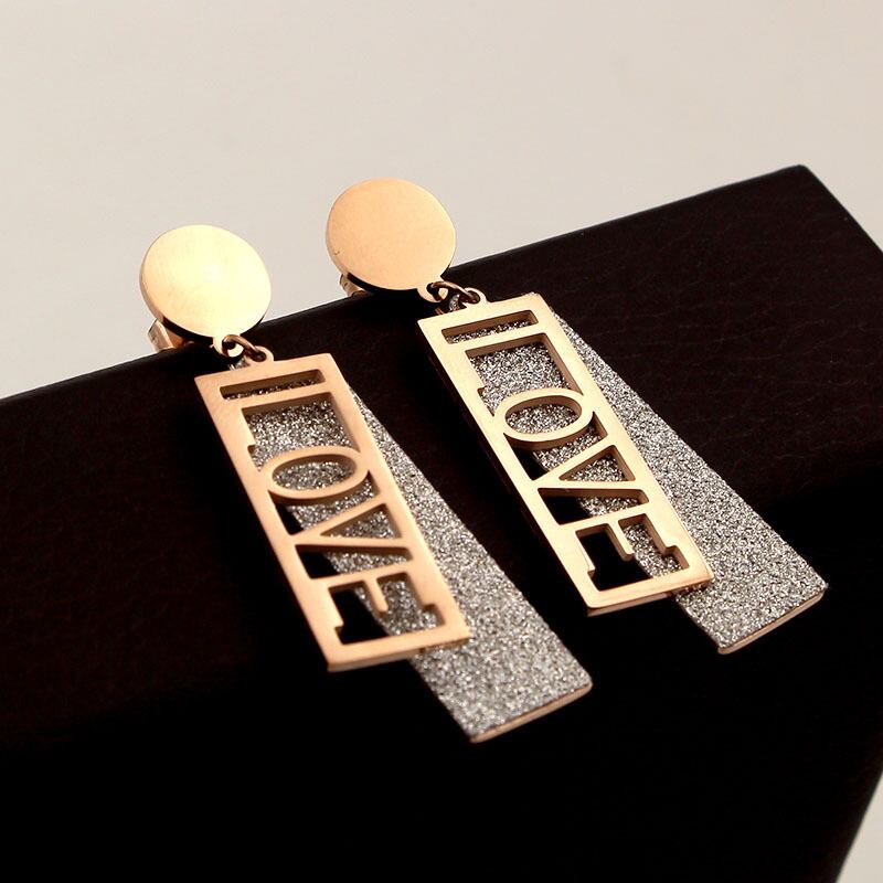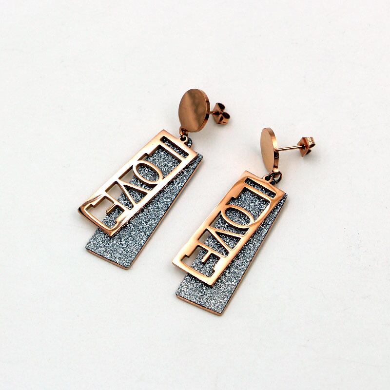 送料無料 気質女性ジュエリーLOVEつや消し長方形ブランドイヤリングチタン鋼イヤリング女性の卸売 指輪 アクセサリー AE00887731696991759