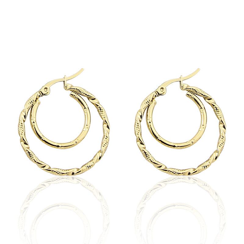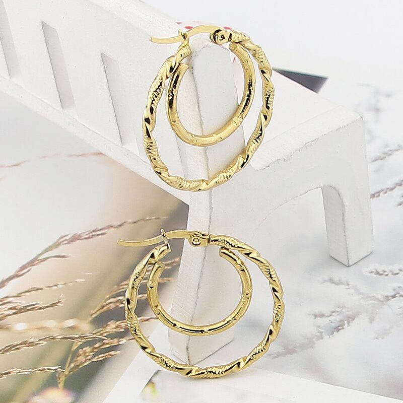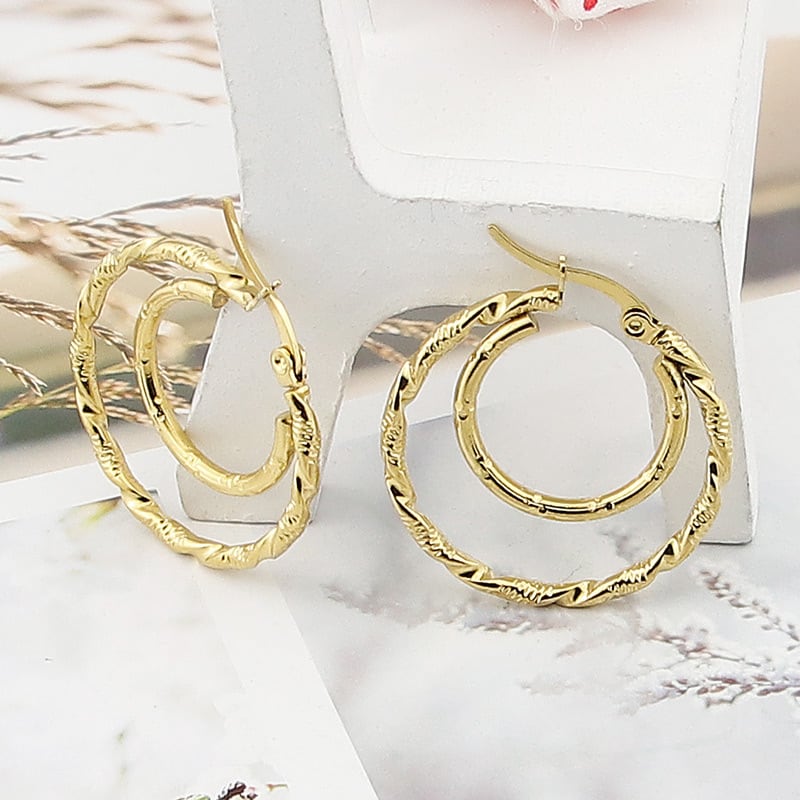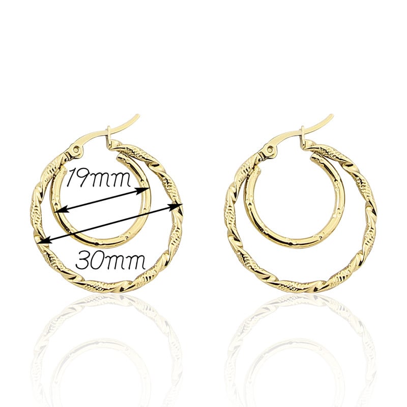 送料無料 ステンレス鋼の宝石類のダブルサークルツイストワイヤーイヤリング女性のパーティーの結婚式の愛の贈り物 指輪 アクセサリー AE00887749593639781