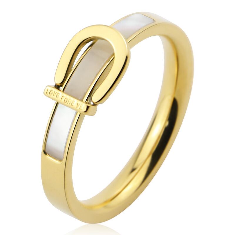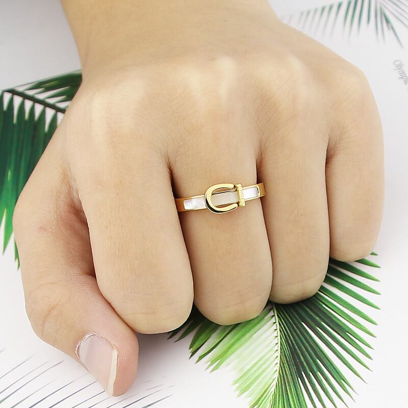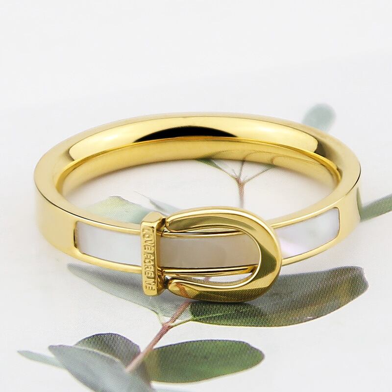 送料無料 シェルがちりばめられたホットラグジュアリージュエリーベルトバックルリングステンレススチールリングLOVEWomenParty Gift ハーネス 指輪 アクセサリー AE00887722076552856