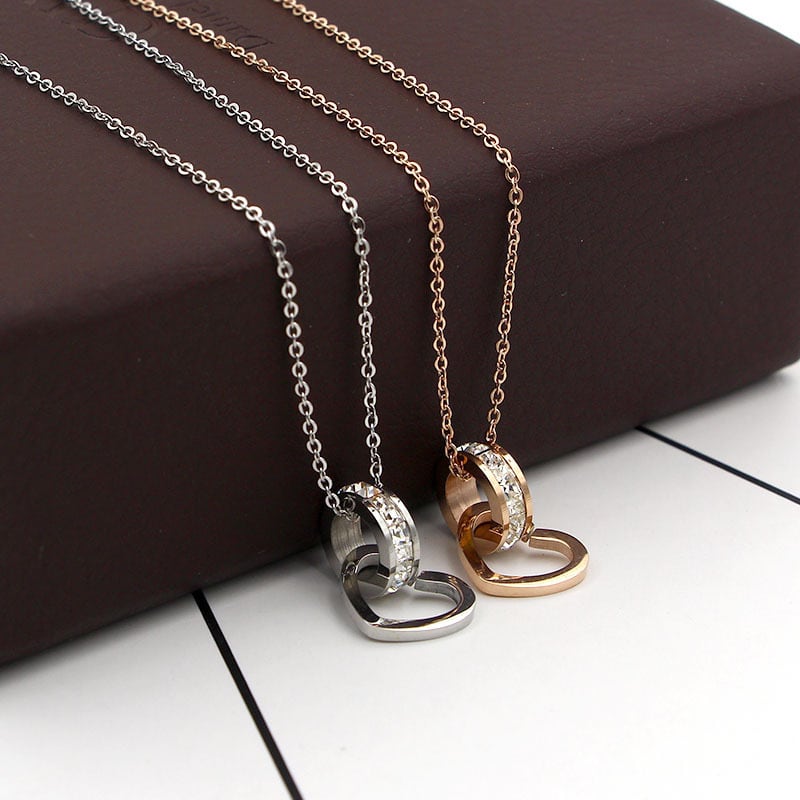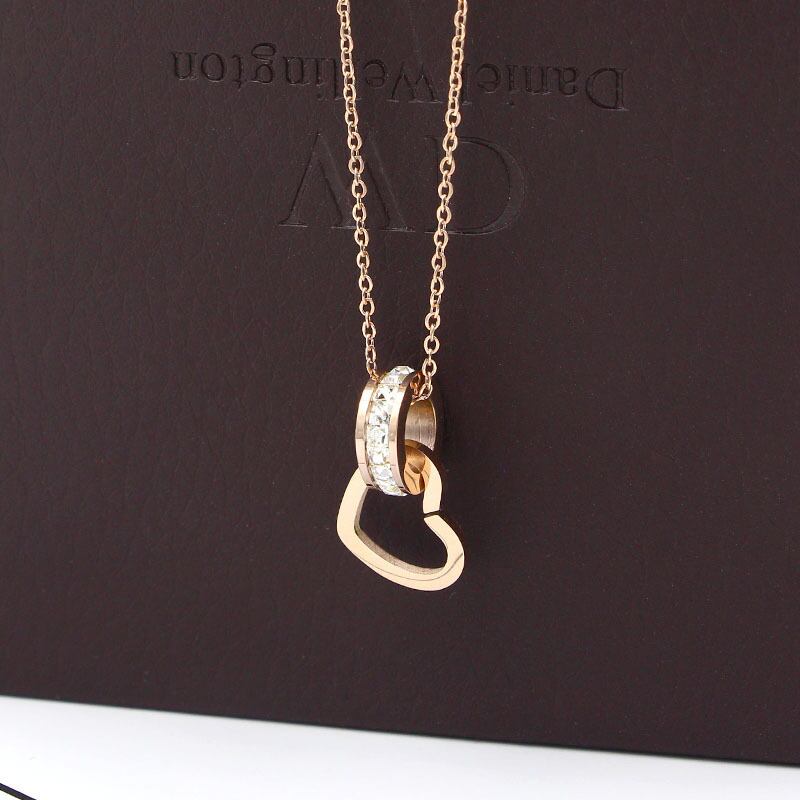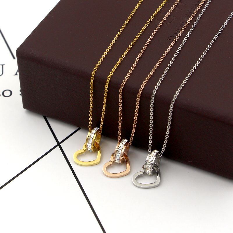 送料無料 ピーチハートShuanghuanクリスタルショートネックレス女性モデルファッションハートバックルウルトラフラッシュチタンスチールネックレスジュエリー レース アクセサリー AE00887719090459848