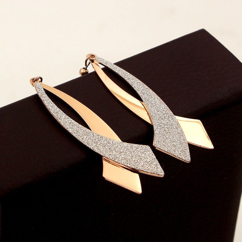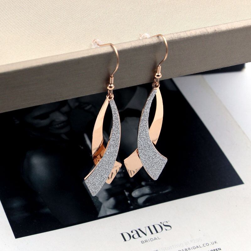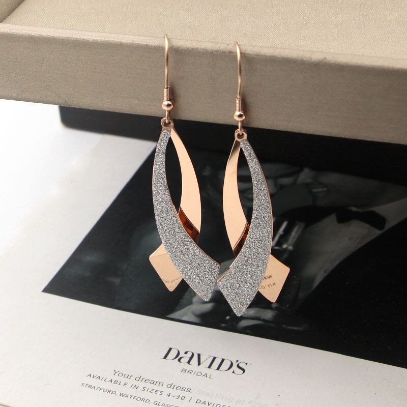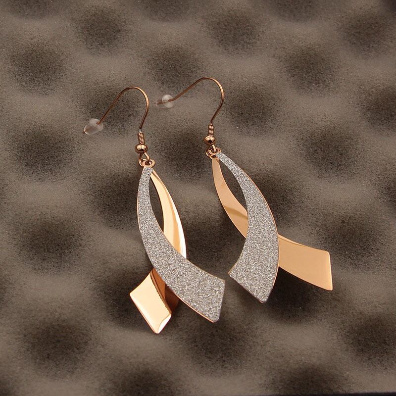 送料無料 イヤーフックフロストローズゴールドダブルカーブナイフイヤリングヒップスターパーソナリティワイルドウーマンチタンスチールイヤリングジュエリー 指輪 アクセサリー AE00887720387564881