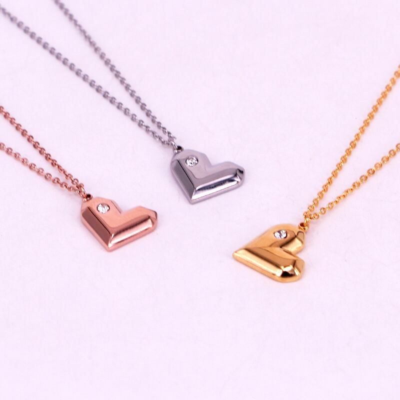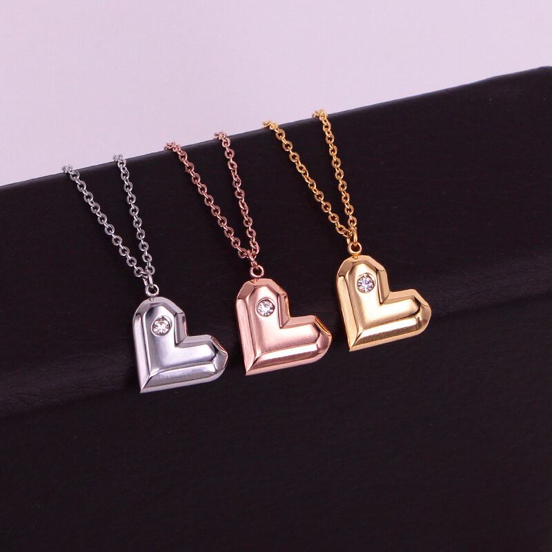 送料無料 ホットステンレススチールベベル単結晶三次元ピーチハートペンダントウーマンネックレスジュエリー レース アクセサリー AE00887762037518724