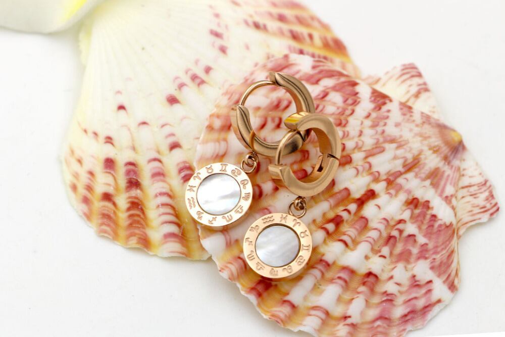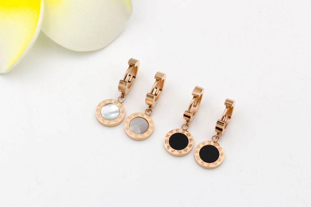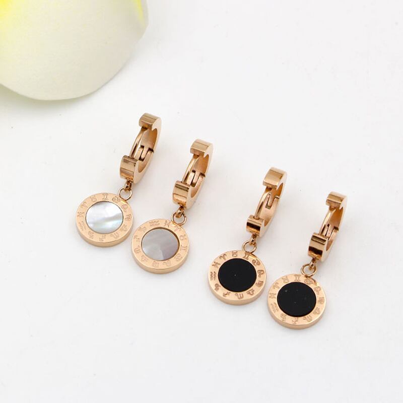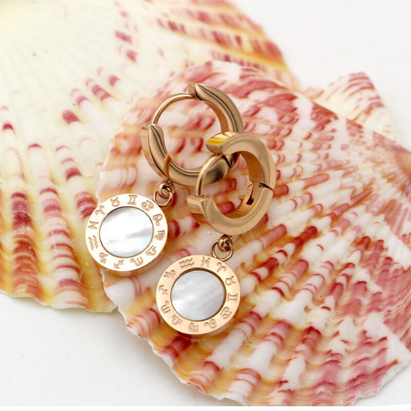 送料無料 ホットバックル12コンステレーションブラックとホワイトシェルイヤリングチタンスチールカラーローズゴールド抗アレルギーイヤリング 指輪 アクセサリー AE00887766907948951